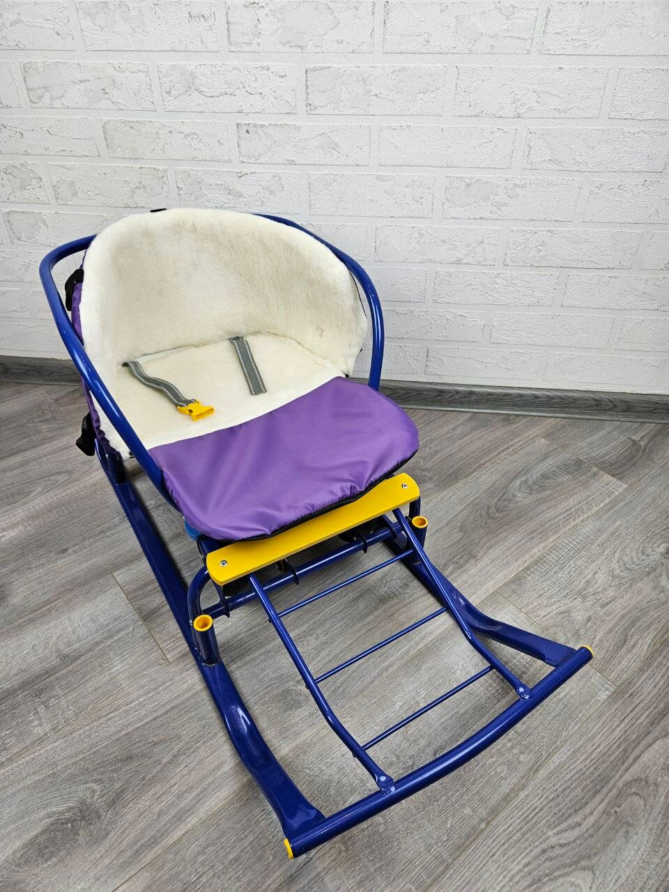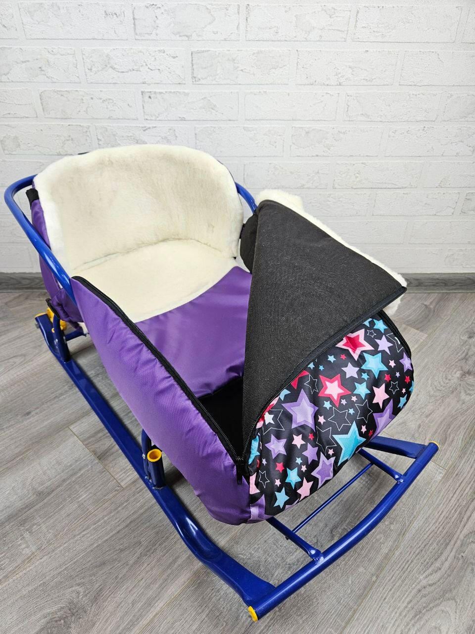 Купить Матрасик для санок меховой 3 в 1 Звездное небо бок ярко-фиолетовый мех белый