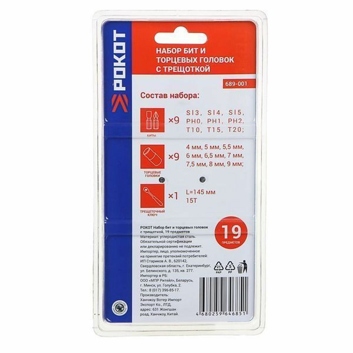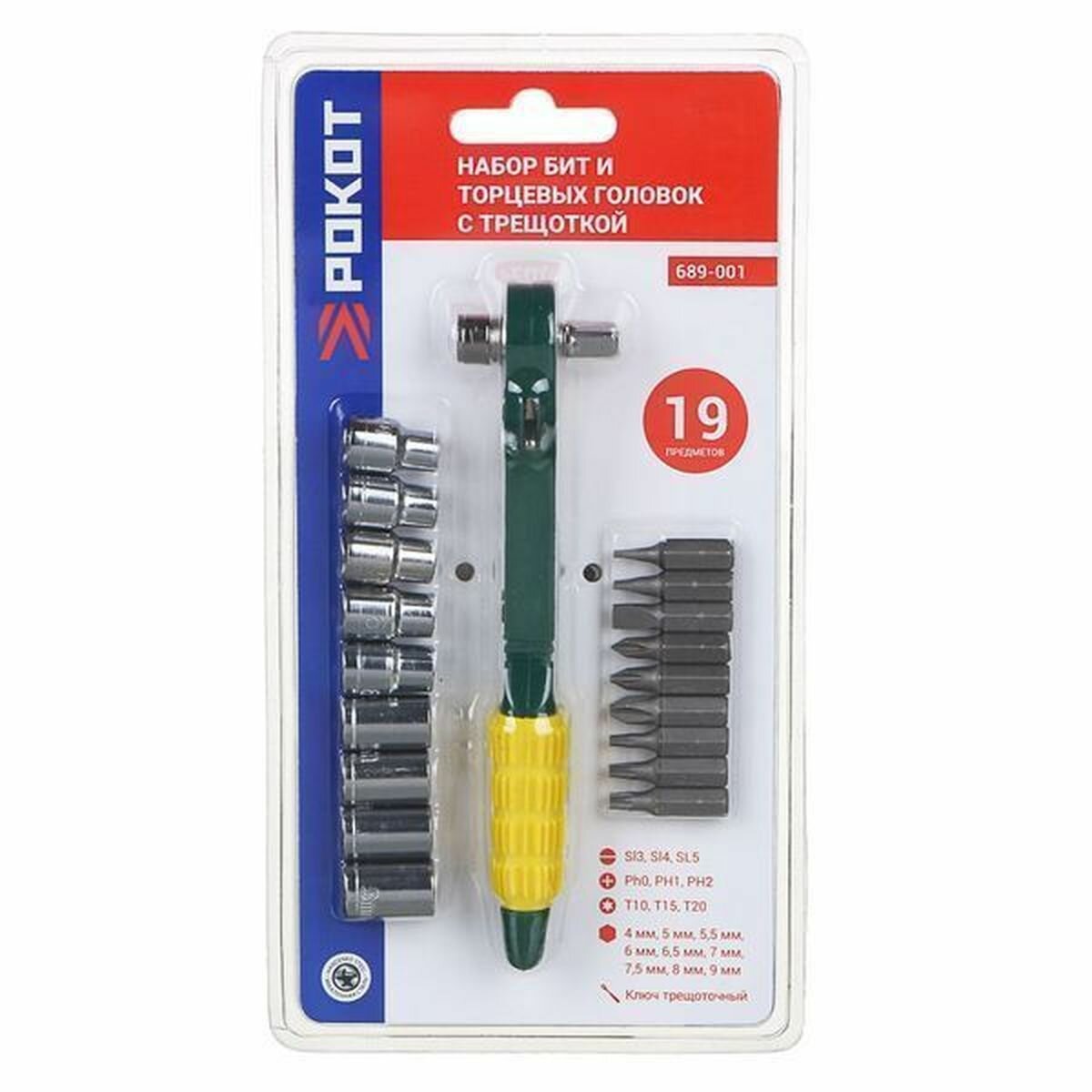 Купить Набор бит и торцевых головок с трещоткой, 19 предметов Рокот