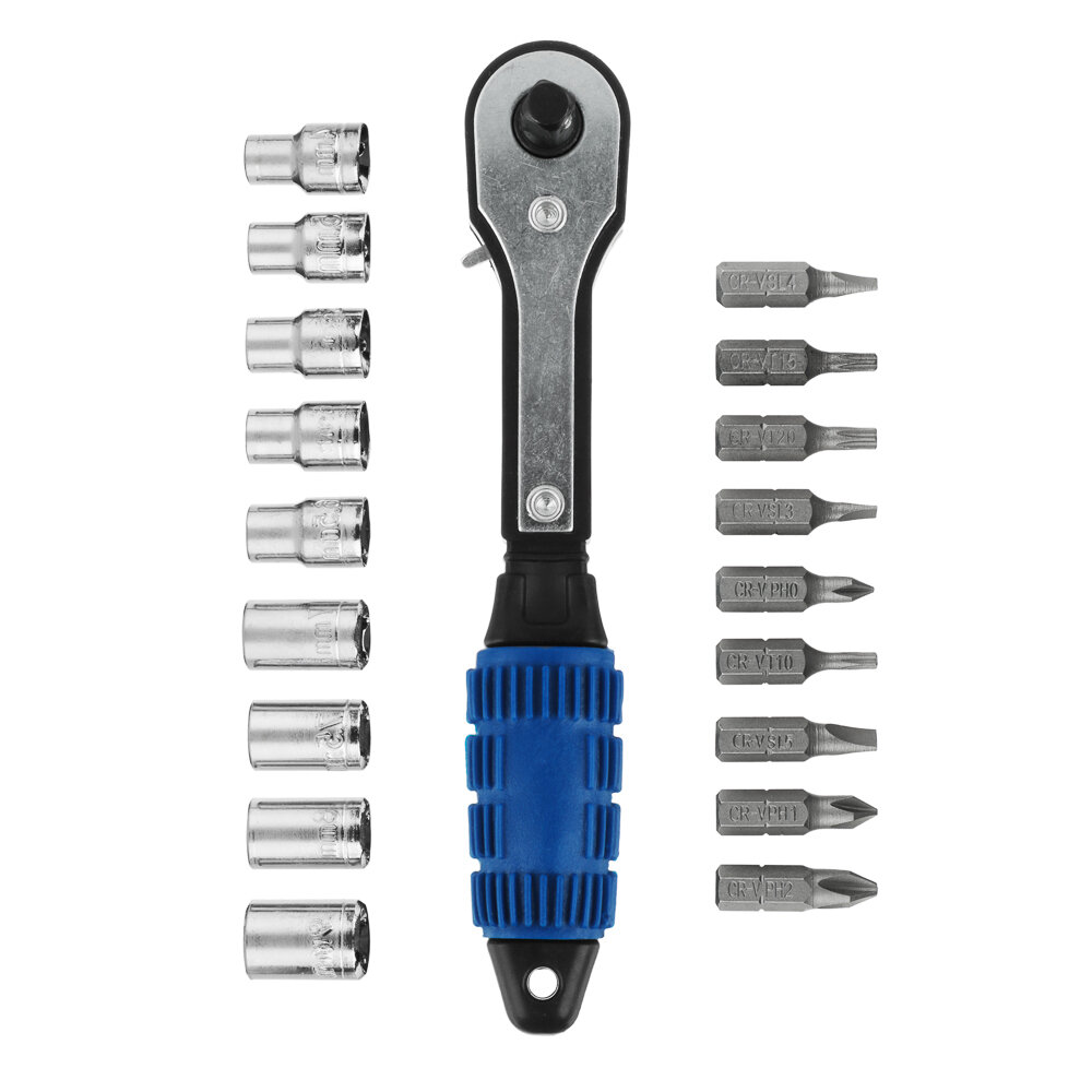 Рокот Набор бит и торцевы головок с трещоткой, 19 предметов