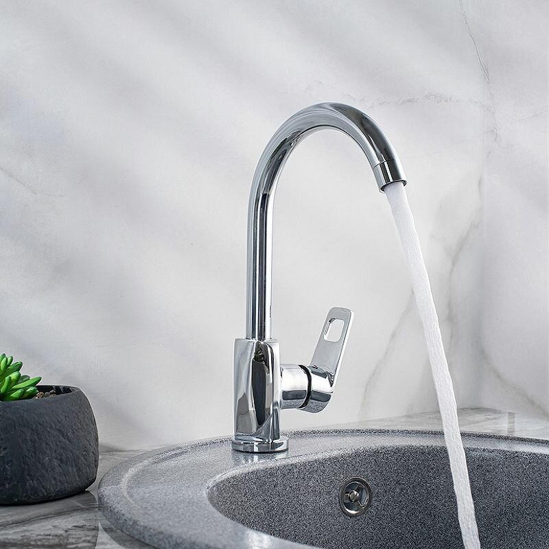 Купить Смеситель для раковины с поворотным изливом на кухню и ванную / кухонный кран для мойки Ростовская Мануфактура Сантехники SL134-017F Хром