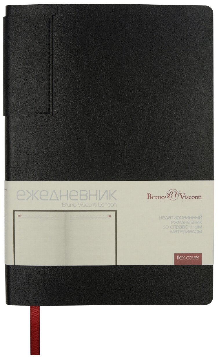СохранитьКожаный блокнот для записей Bruno Visconti LONDON черный, ежедневник недатированный в мягкой обложке flex, 272 стр, записная книжка А5 планер / блокнот черный для бизнеса / кожаный ежедневник арт.3-546/02 интересное: