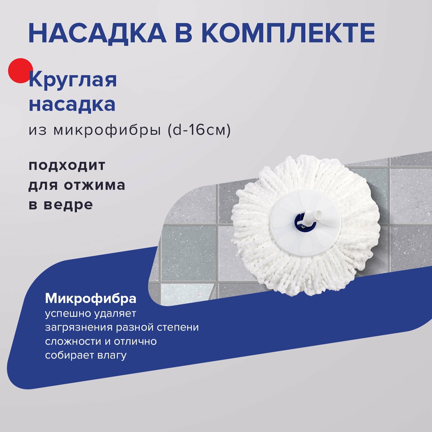 Купить Набор для уборки LAIMA, ведро 11 л/5 л с отжимом и педалью, швабра с круглой насадкой на липучке, 601459