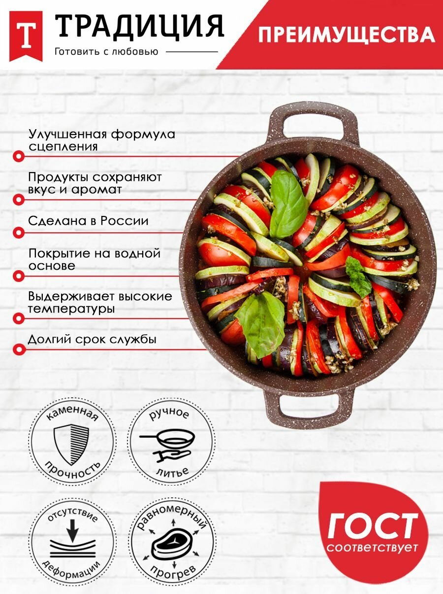 Жаровня антипригарная литая 28см со стеклянной крышкой Доломит ТМ Традиция готовить с любовью интересное: