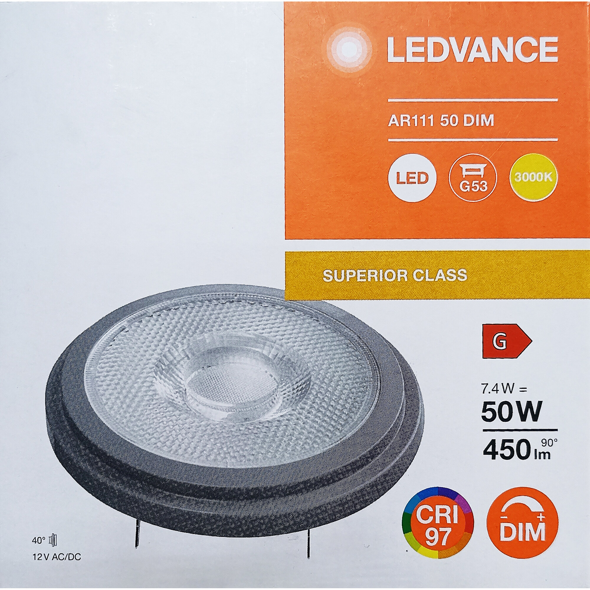 Купить Лампа LED Софит AR111 7.4W 12V G53 450Лм D-111mm L-55mm Угол 40 град. Диммируемая 3000К Свет Теплый белый OSRAM, уп. 1шт