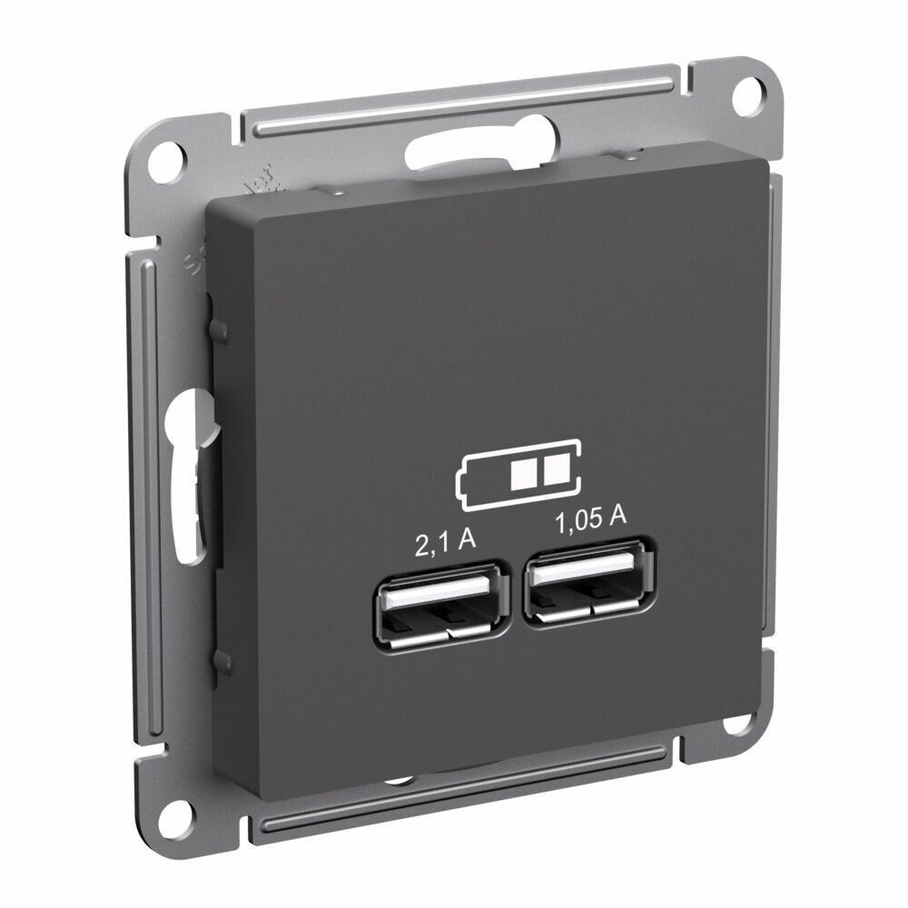 Розетка USB A+A (5В/2,1А 2х5В/1,05А) Грифель, Systeme Electric AtlasDesign