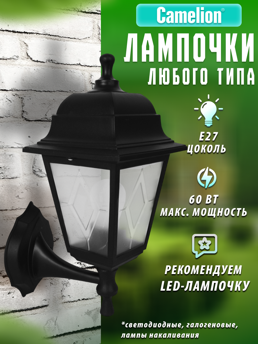 Светильник уличный садово-парковый настенный IP44 13830 Camelion PP4201/02 220В 60Вт Е27 четырехгранный черный