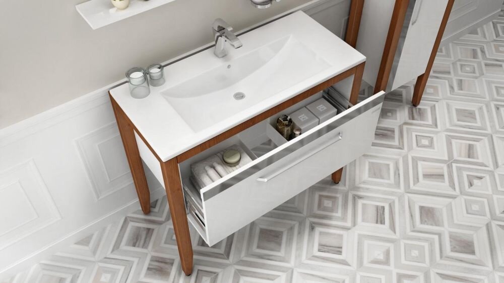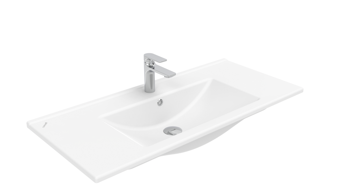 Накладная раковина для ванной комнаты SU100 мебельная (45*100см), цвет глянцевый белый
