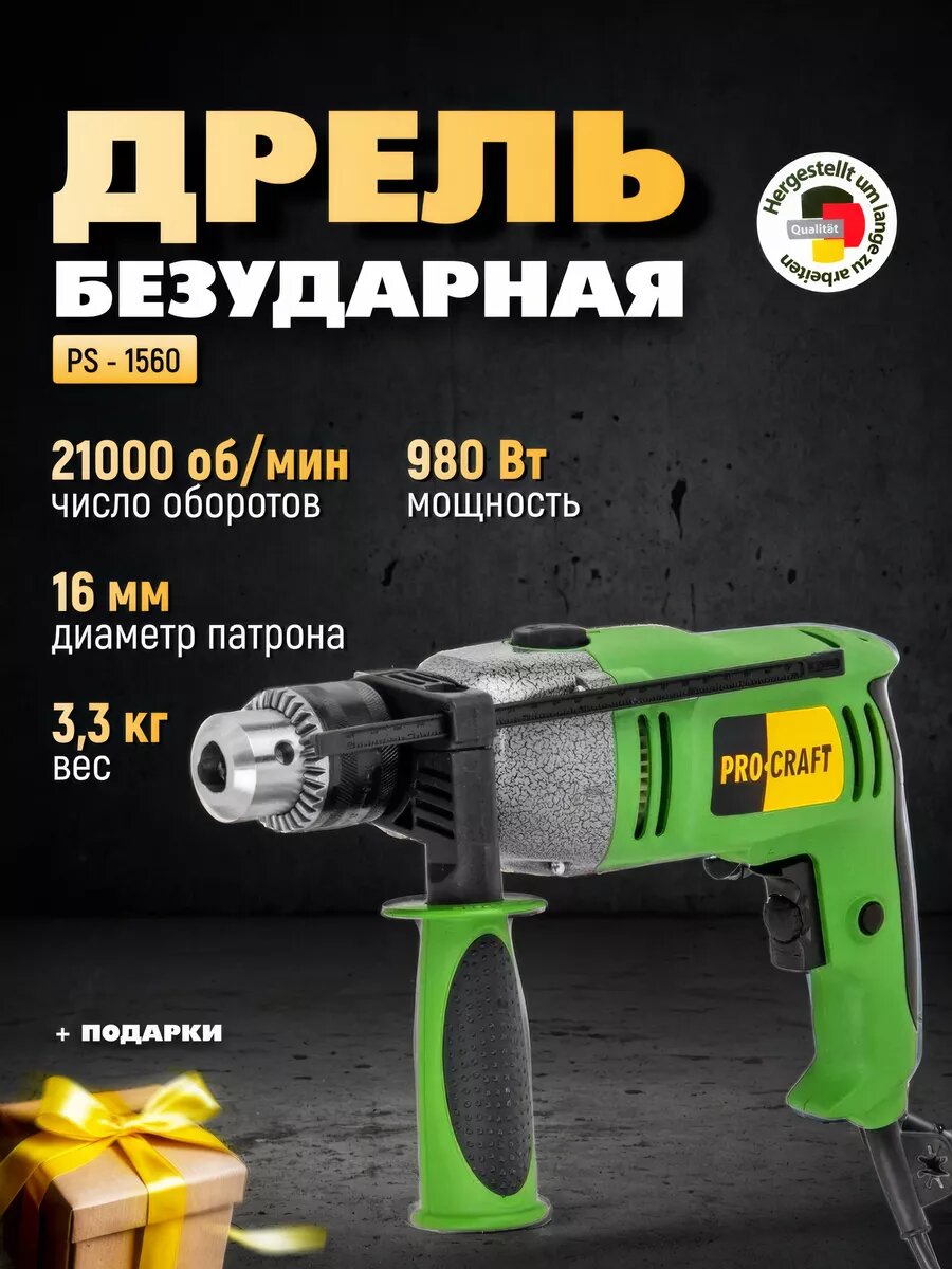 Ниже Вы можете прочитать отзывы на Дрель ударная Pro-Сraft Professional PS-1650. 16мм. патрон. 2е скорости., ознакомится с подробными характеристиками, посмотреть интересные обзоры и фотографии на Дрель ударная Pro-Сraft Professional PS-1650. 16мм. патрон. 2е скорости..