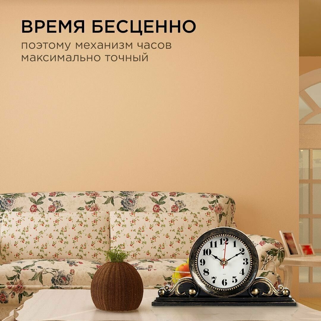 Каминные кварцевые часы в фигурном корпусе Рубин Классика 2514-002 26х14 см с большими арабскими цифрами для украшения интерьера гостиной, спальни, кухни или офиса