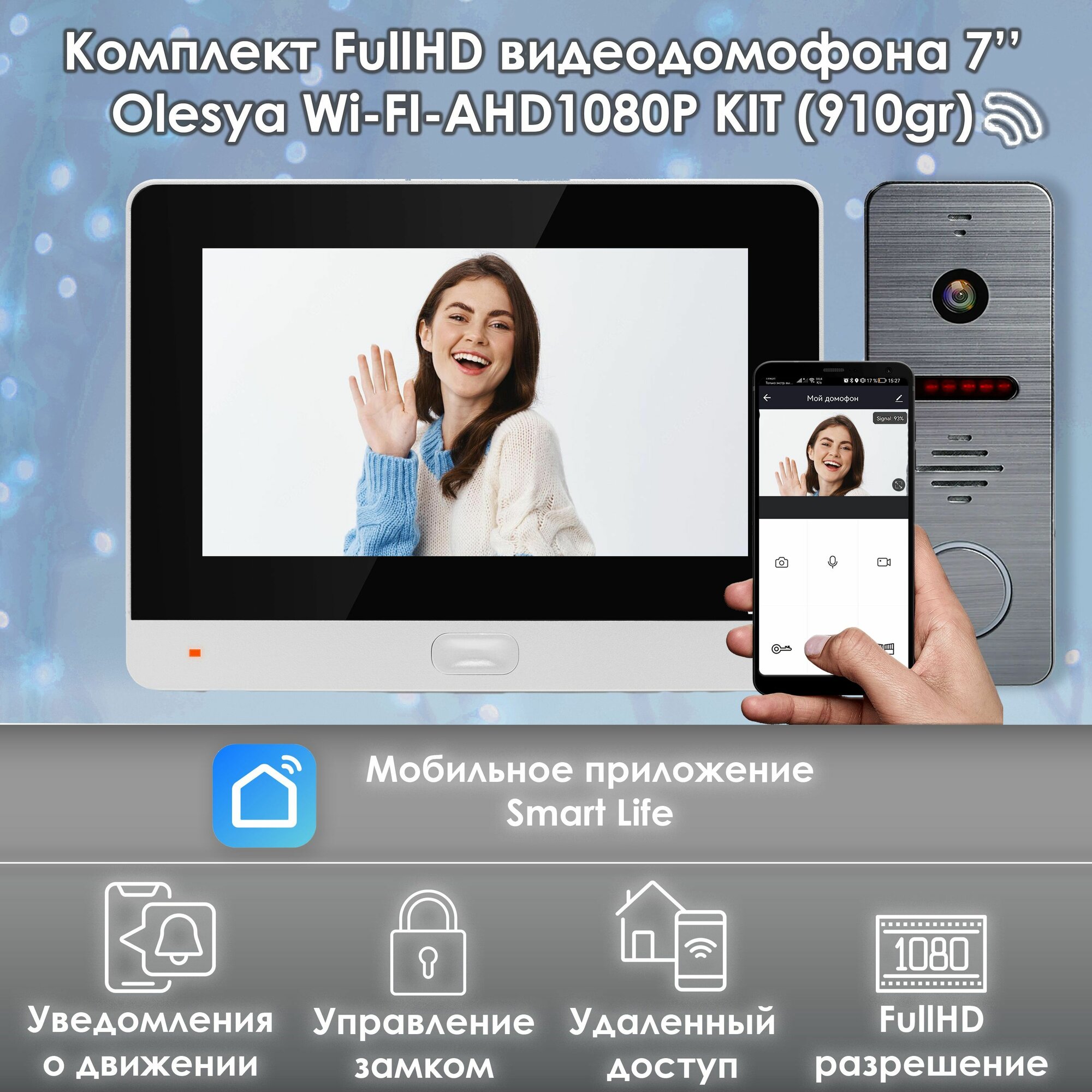 Комплект видеодомофона Olesya Wi-Fi AHD1080P Full HD (910gr). Серый. Экран 7". Поддержка Android и IOS. Совместим с подъездным домофоном через МС. интересное:
