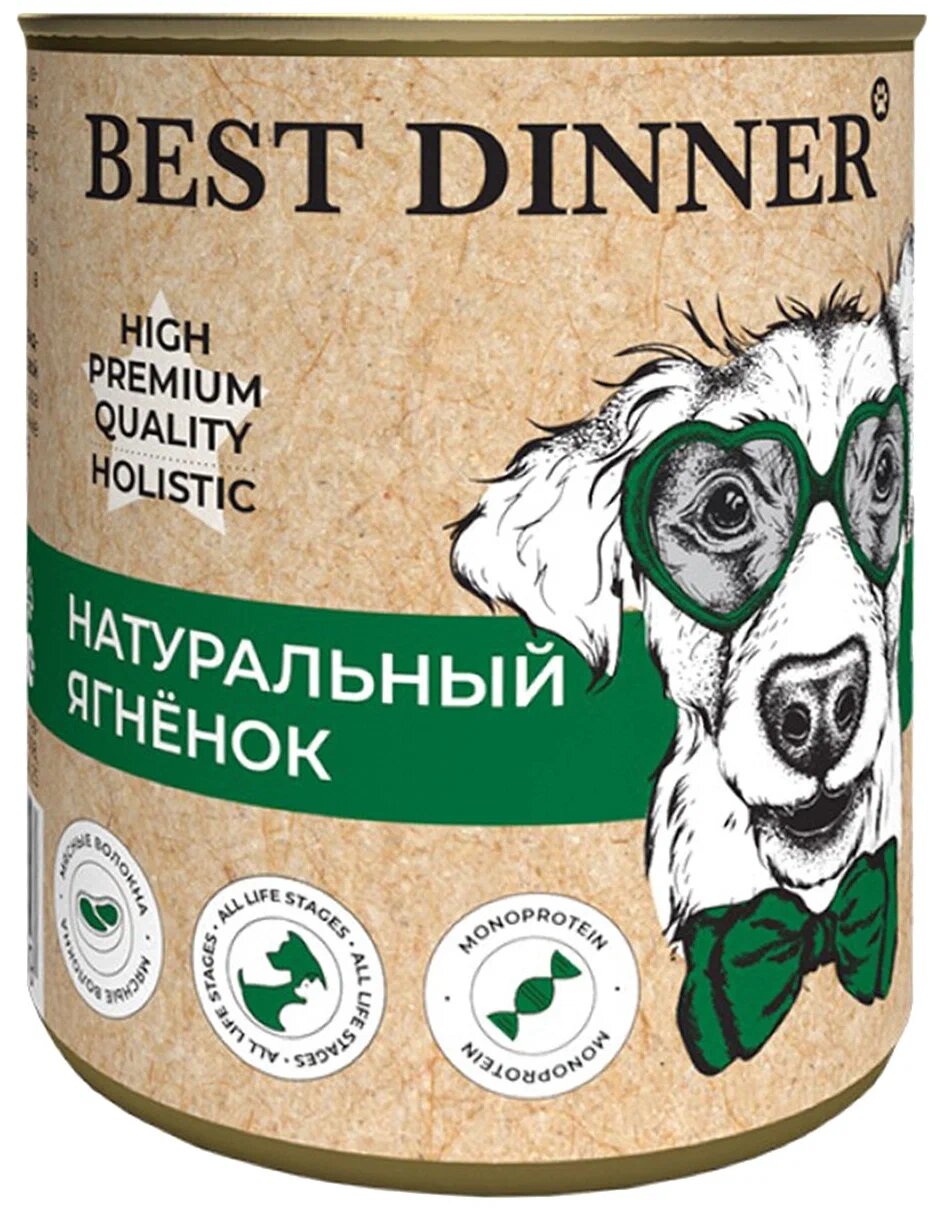 Best Dinner Бест Диннер консервы для собак High Premium, натуральный ягненок, 340 гр. по 6 шт.