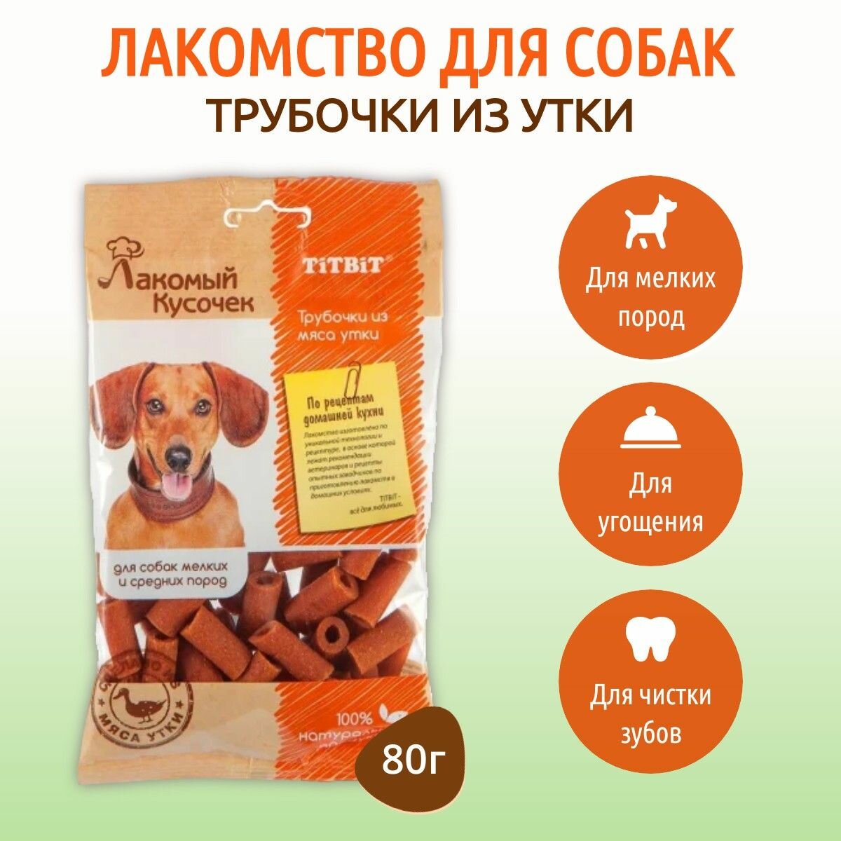 Купить TiTBiT Лакомый Кусочек Лакомство для собак мелких и средних пород Трубочки из мяса Утки 80 г