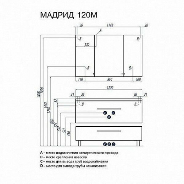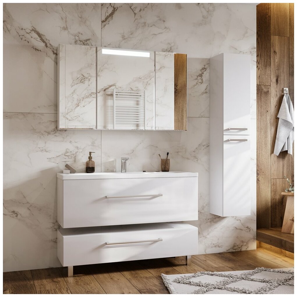 Тумба с раковиной AQUATON Мадрид 120 М 1A1687K2MA010 1197x441x400 подвесная, 1 ящик, белый глянец интересное: