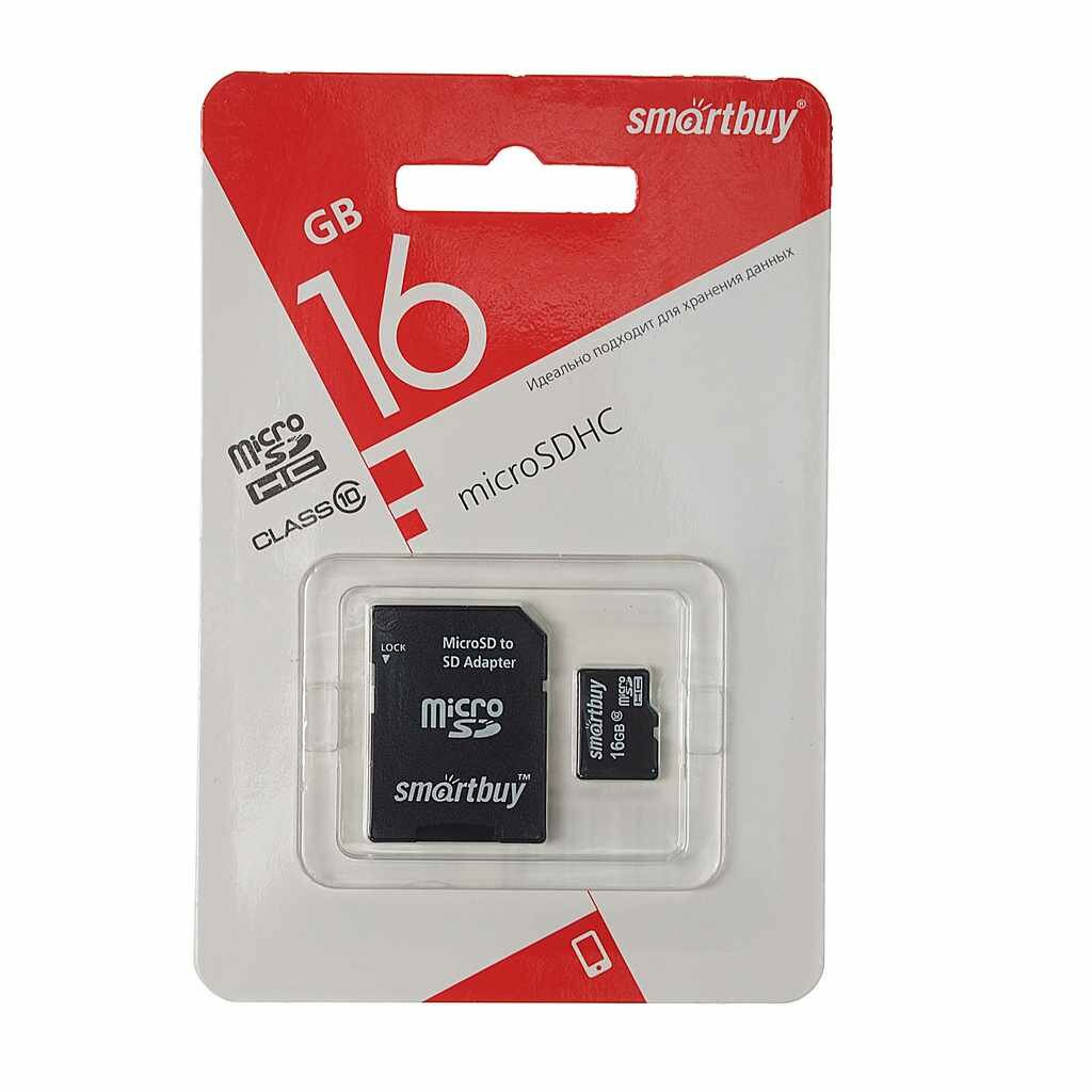 Карта памяти Smart Buy - micro SDHC, 16Gb, с адаптером SD, 1 шт.