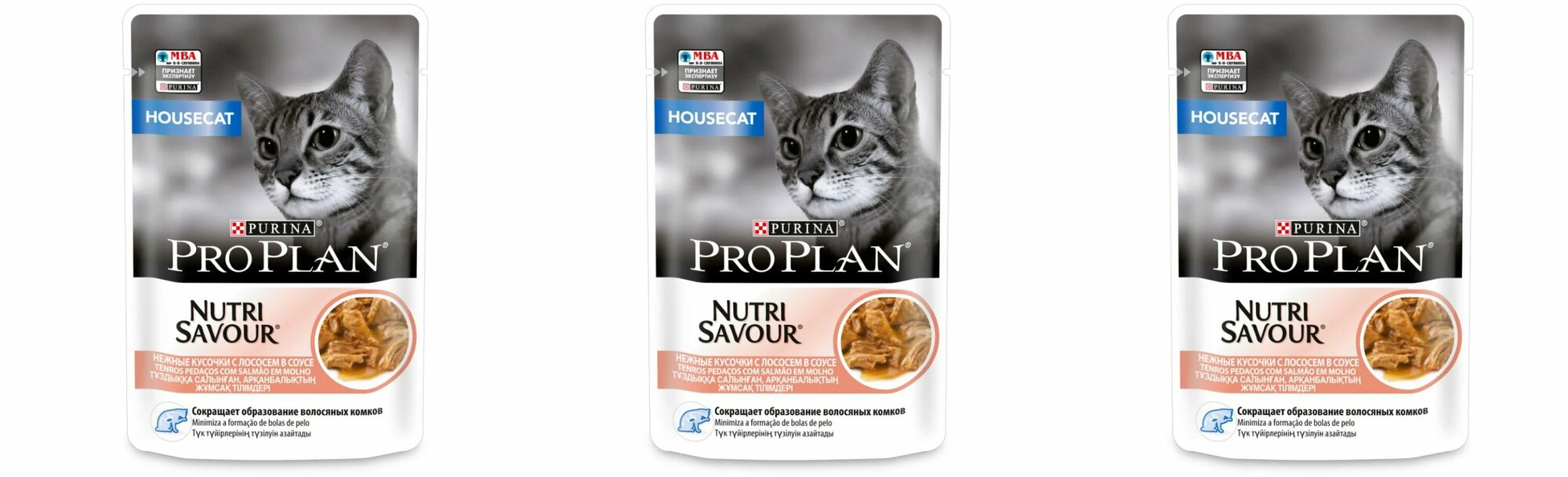 Купить Влажный корм для кошек Purina Pro Plan Nutri Savour Housecat Salmon, для живущих в помещении, лосось, 3 шт. х 85 г (кусочки в соусе)