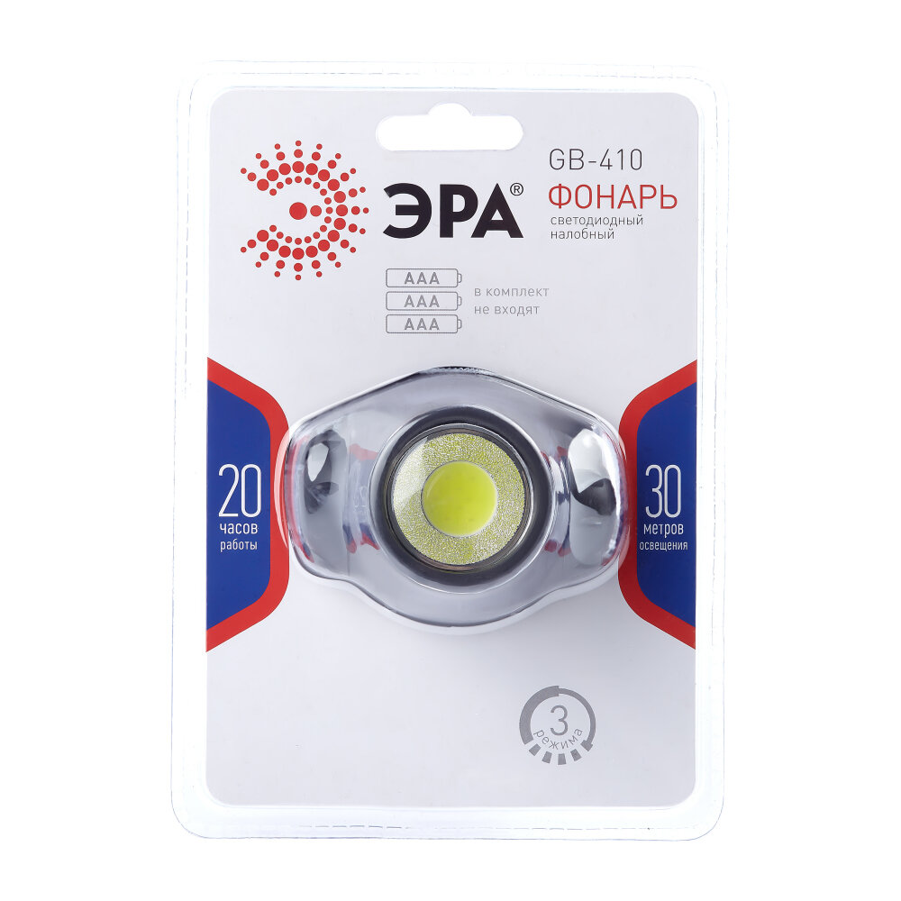 Купить Фонарь налобный на батарейках GB-410 ЭРА мощный туристический / Фонарик кемпинговый ударопрочный, 3 режима, аварийное мигание