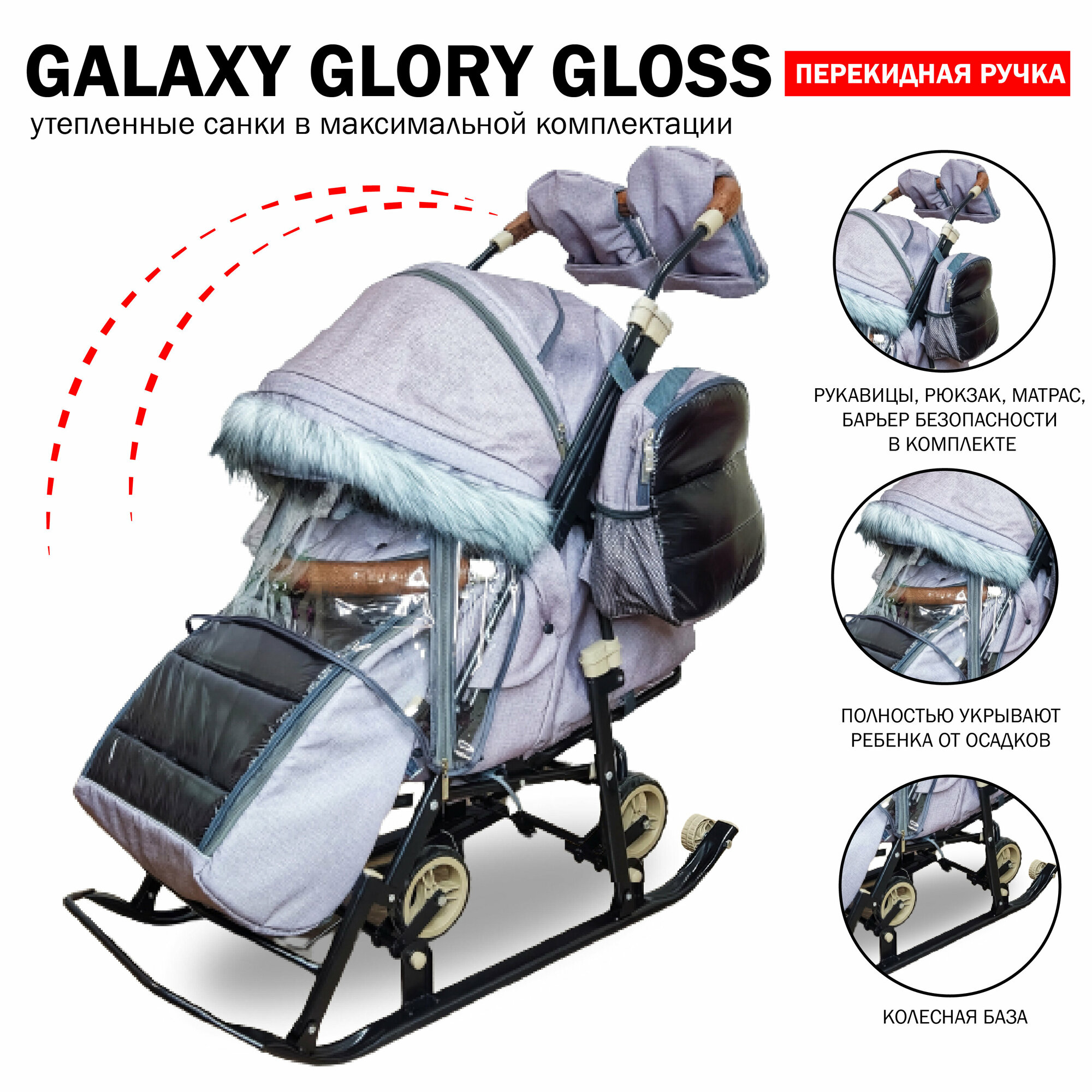 Санки-коляска GALAXY GLORY GLOSS лен пудровый