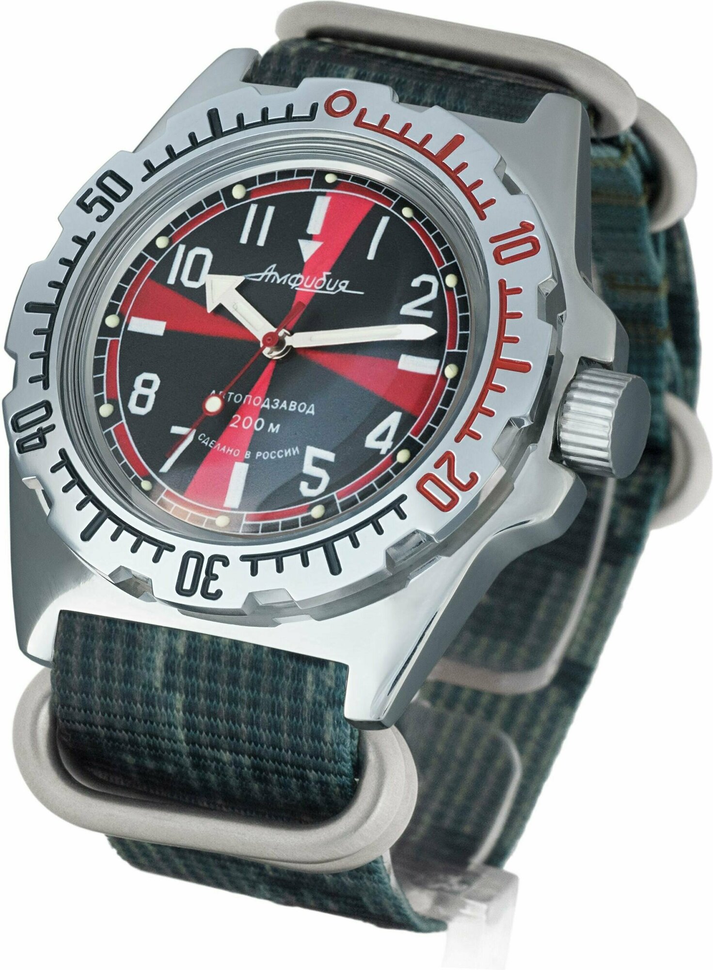 Купить Часы наручные мужские механические с автоподзаводом Восток Амфибия 110650_digitalgreen, нейлон, камо цифровой зеленый