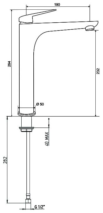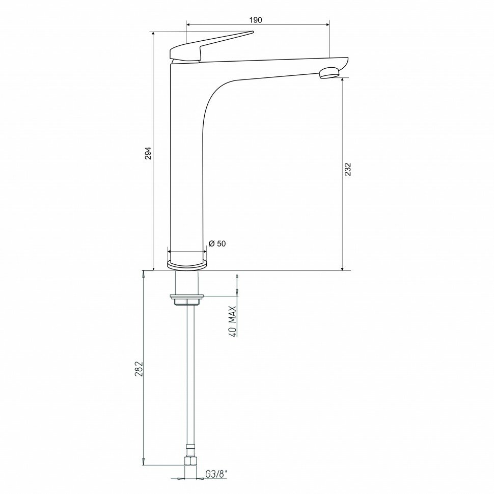 Высокий смеситель на столешницу Paini Laguna 29,4см, арт. LACR205LL, неповоротный излив, без донного клапана