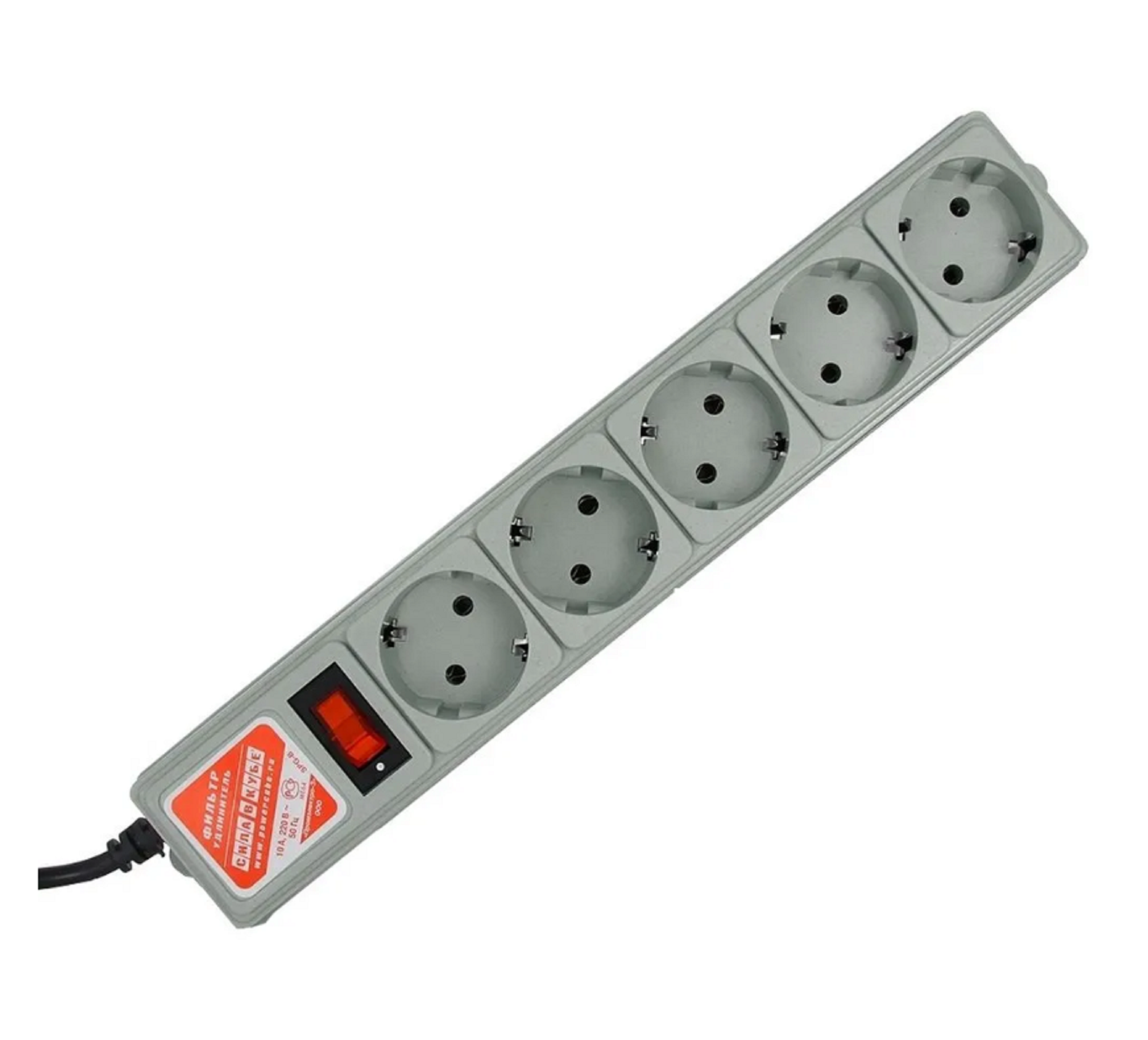 Сетевой фильтр Power Cube SPG-B-10, 5 розеток, с/з, 10А / 2200 Вт серый 3 м