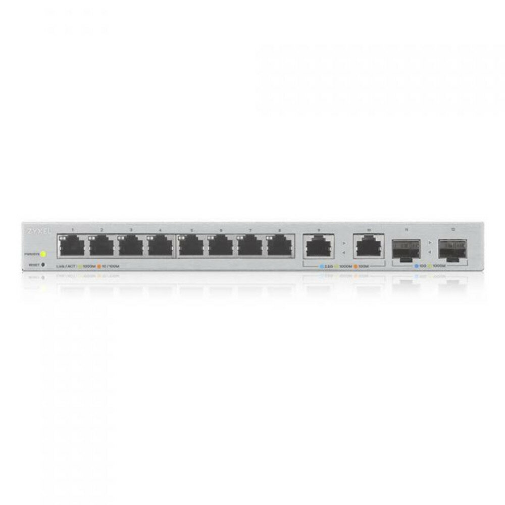 Коммутатор Мультигигабитный Smart L2 коммутатор Zyxel XGS1210-12, 8xGE, 2x1/2,5GE, 2xSFP+, настольный, бесшумный (XGS1210-12-ZZ0102F)