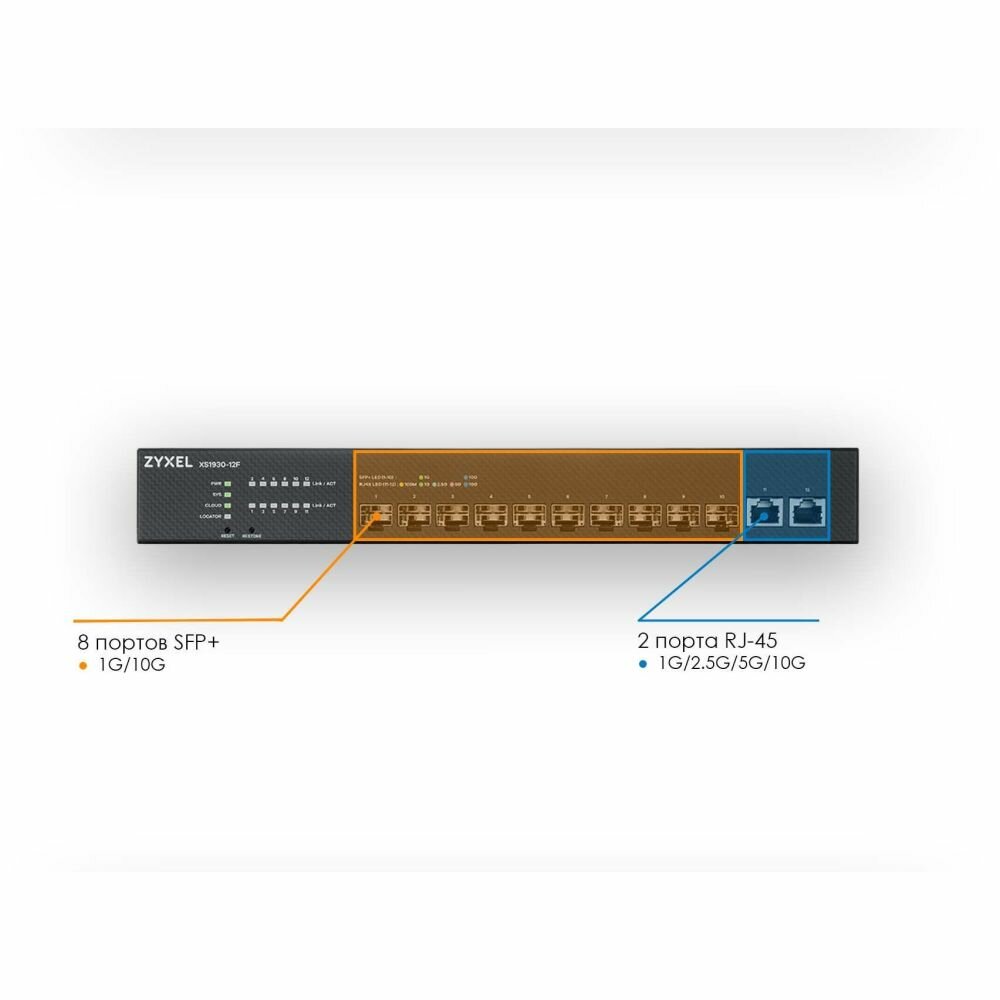 ZyXEL Коммутатор Zyxel NebulaFlex XS1930-12F Hybrid Multi-Gigabit Smart L2+ Switch, rack 19", 10xSFP+, 2xRJ-45: 1/2.5/5/10G, standalone/cloud managed