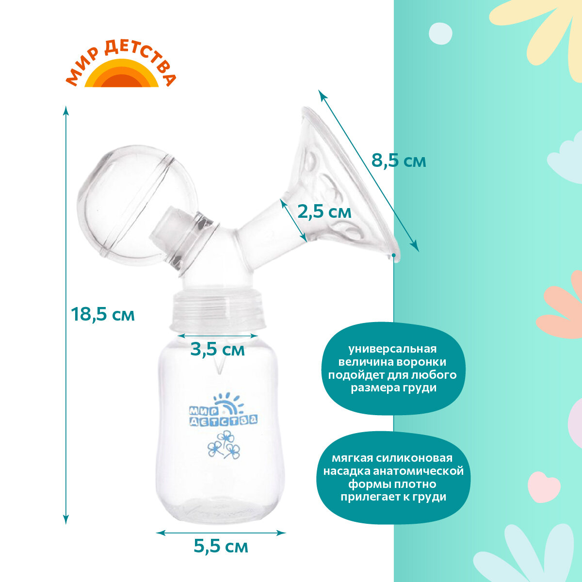 Молокоотсос ручной Мир Детства с бутылочкой 250 мл для сцеживания молока и силиконовой накладкой