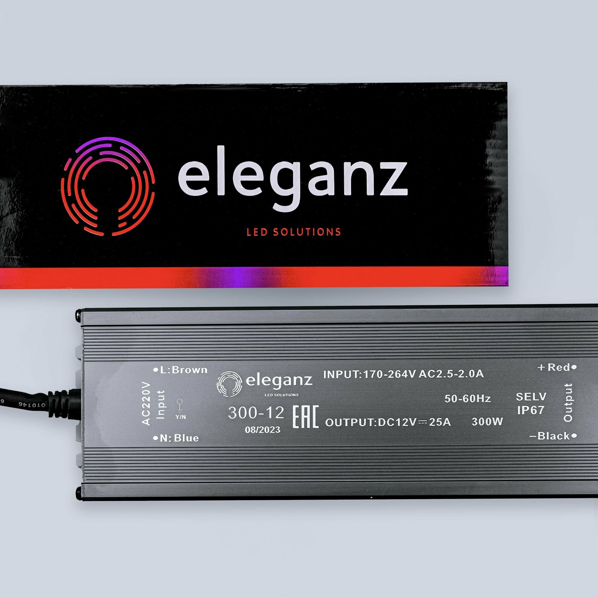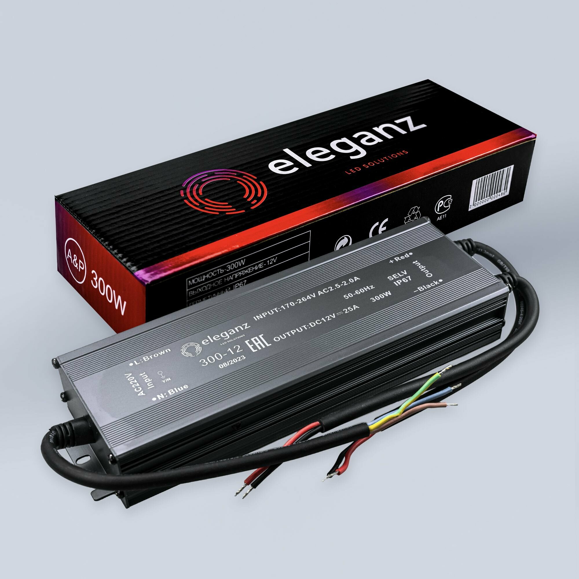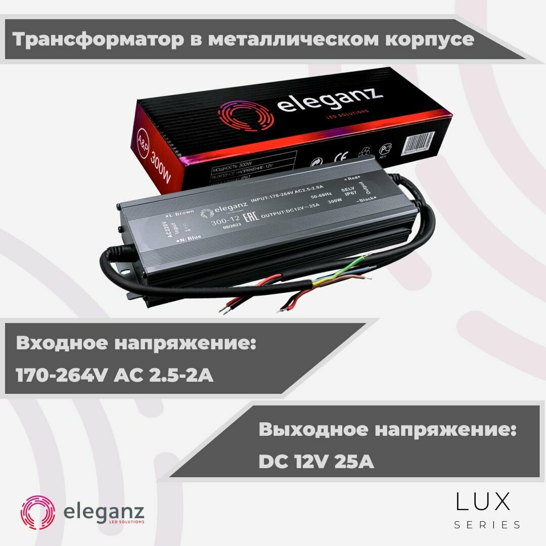 СохранитьГерметичный блок питания/трансформатор (металлический корпус) "Eleganz 300Вт" для светодиодной ленты 12В IP67 интересное: