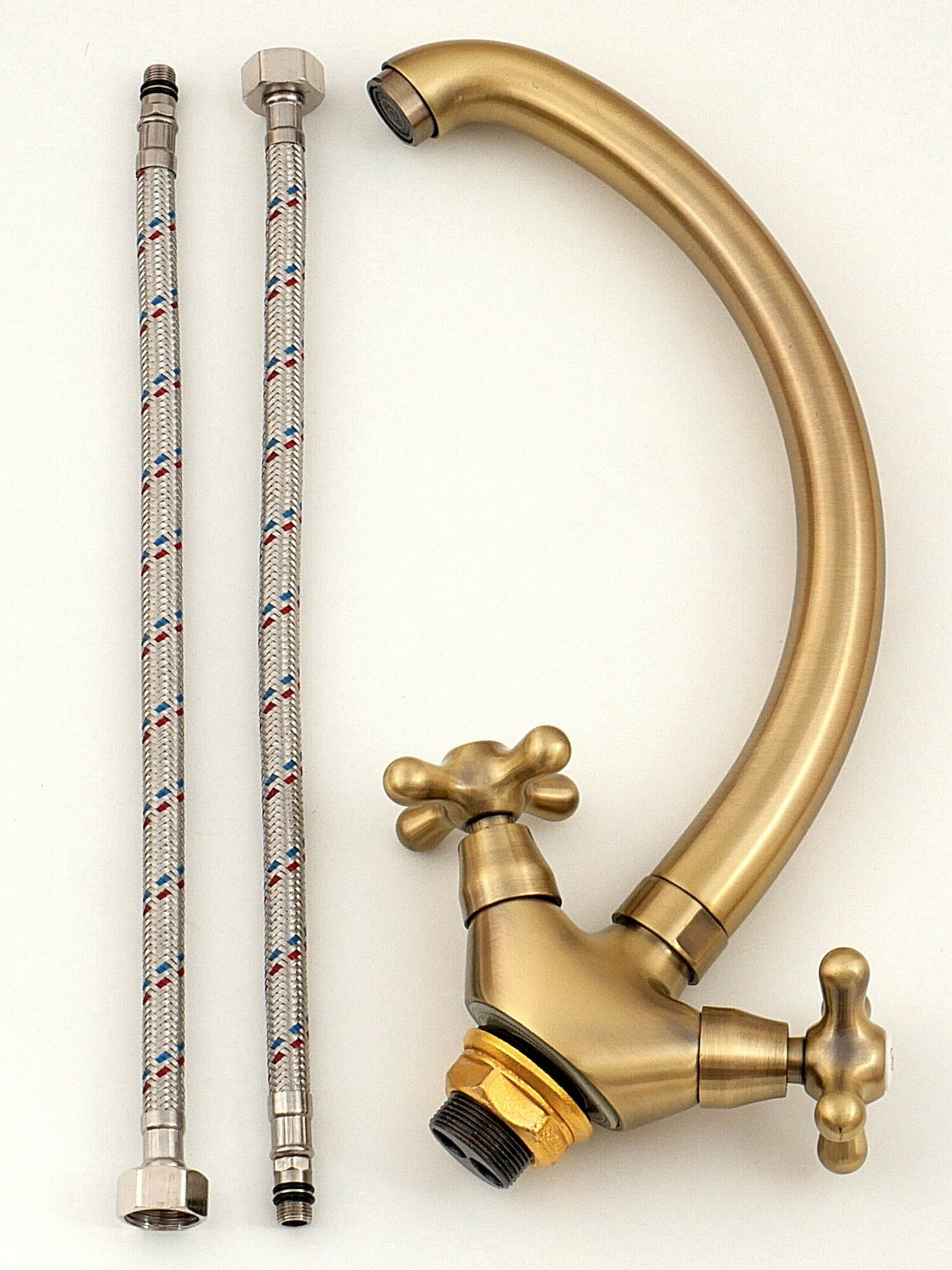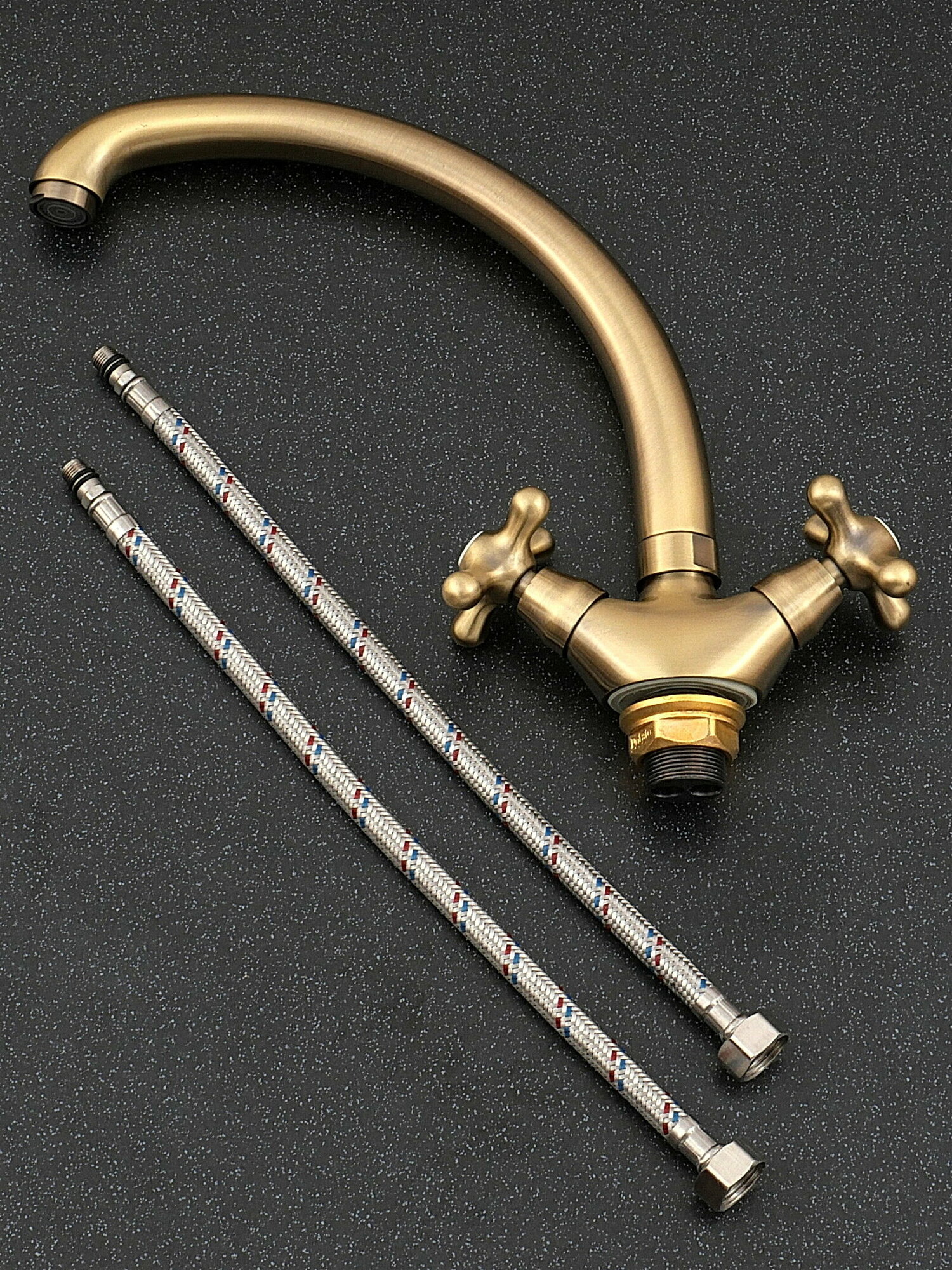 | Комплектация | смеситель, крепёж на гайке, две гибкие подводки 1/2" длиной 35 см, паспорт изделия |