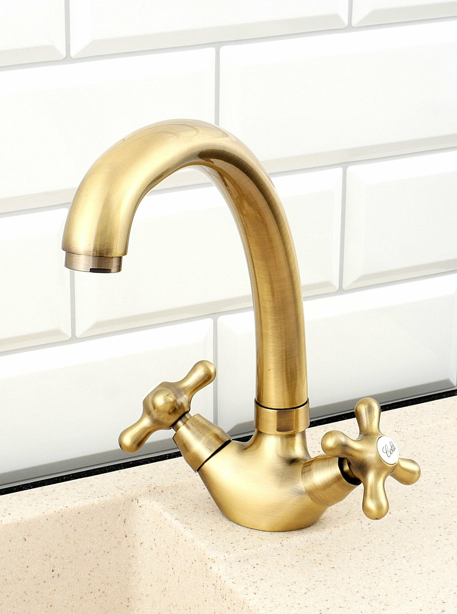 Смеситель на кухню potato P42314-2 с высоким изливом, керамические кран-буксы, бронза, крепление гайка