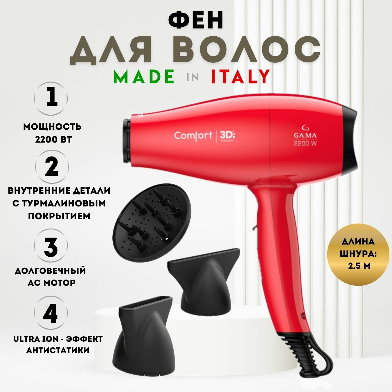 Фен для волос GA.MA COMFORT 3D интересное: