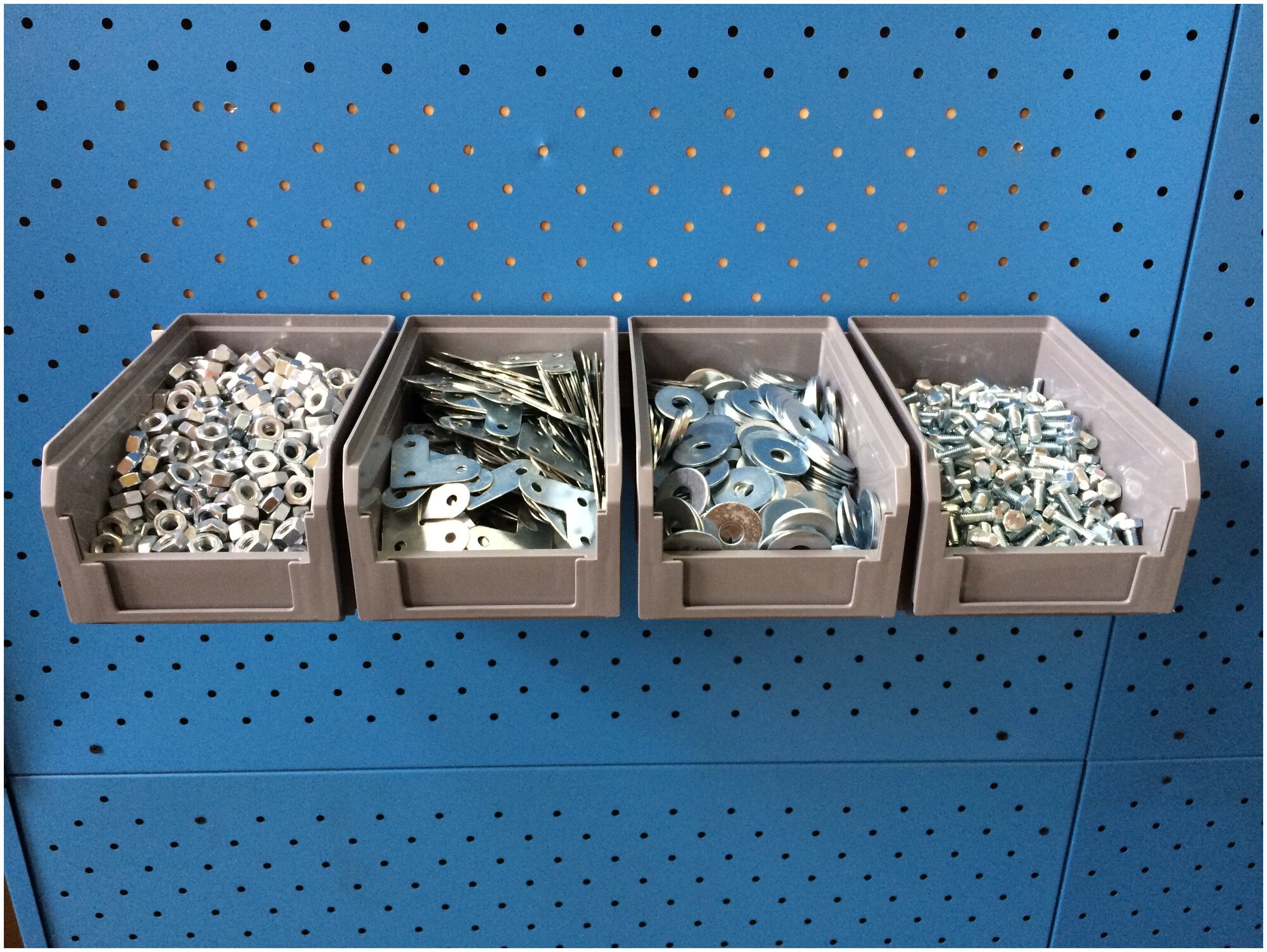 | Подробная комплектация | пластиковый ящик Стелла-техник V-2 - 4 шт.; металлическая планка-органайзер для крепления к стене - 1 шт. |