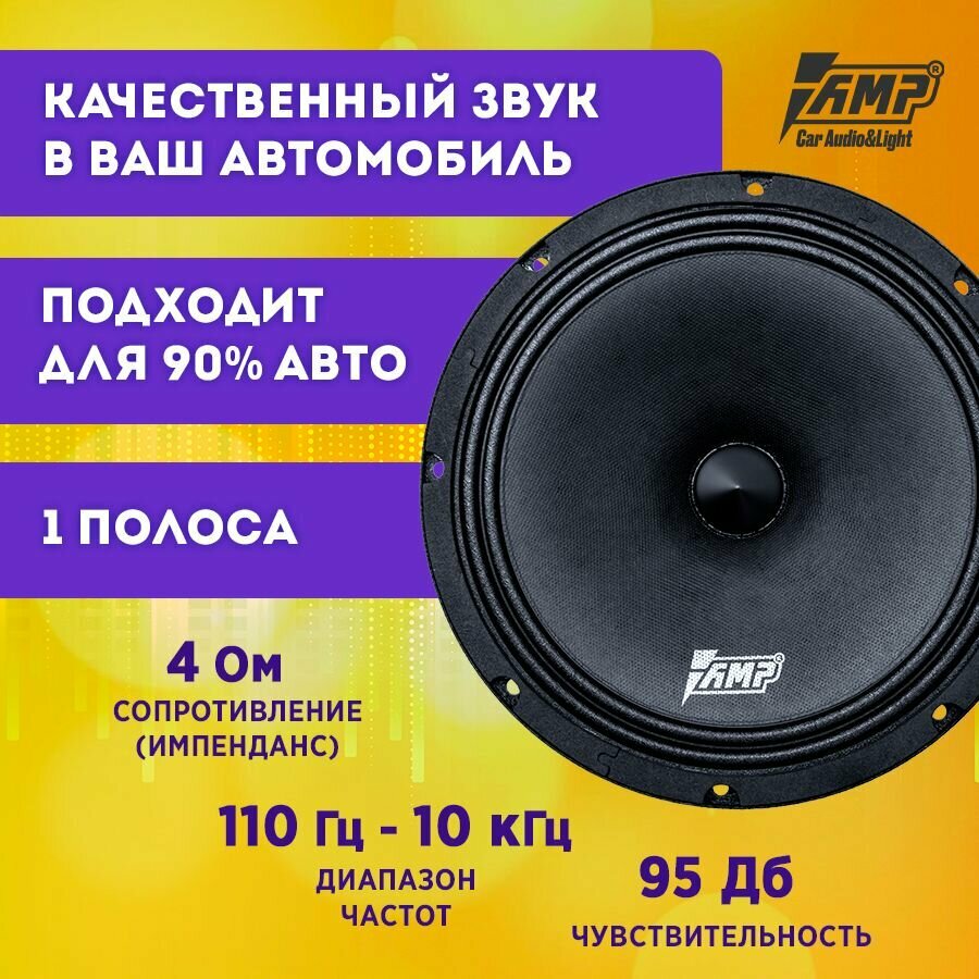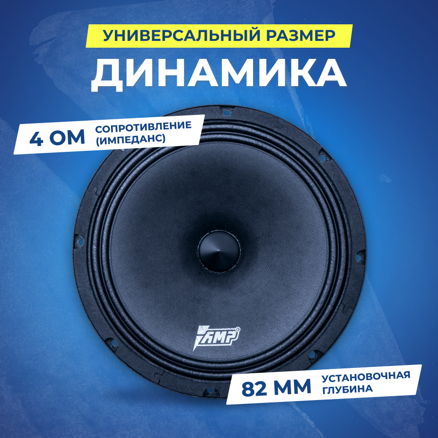 СохранитьАкустика эстрадная AMP Hybrid FR80M25 / Колонки автомобильные 20 см / Комплект 1 динамик / интересное: