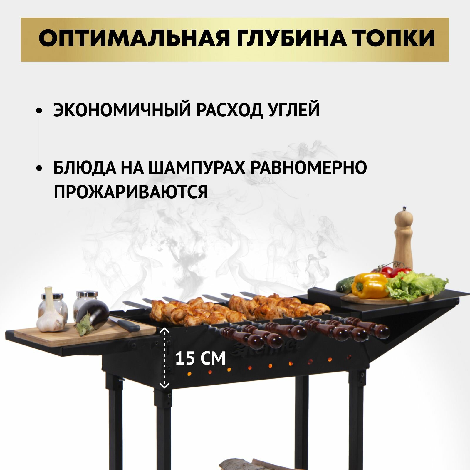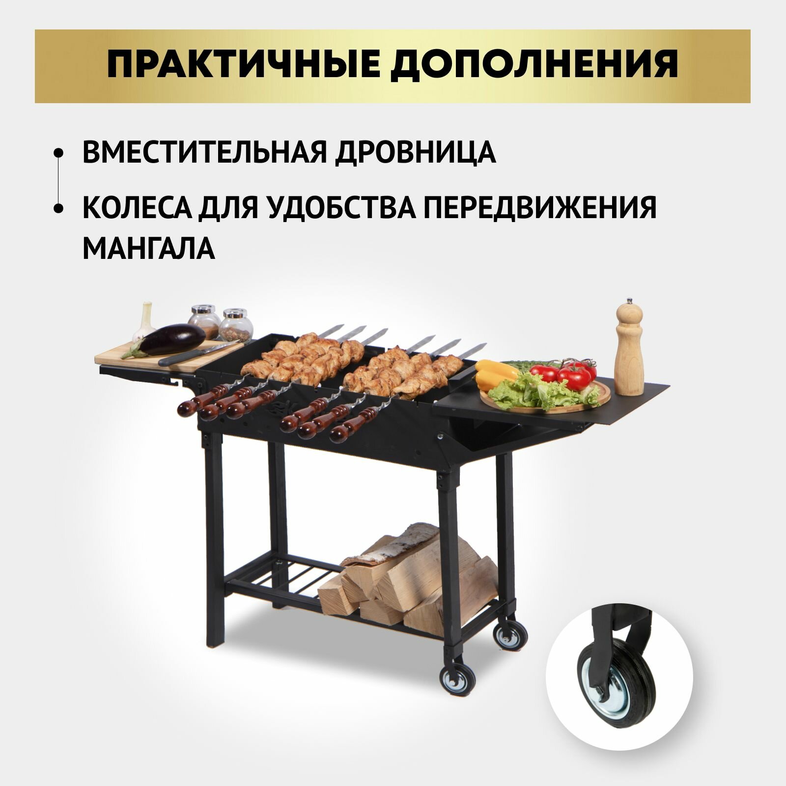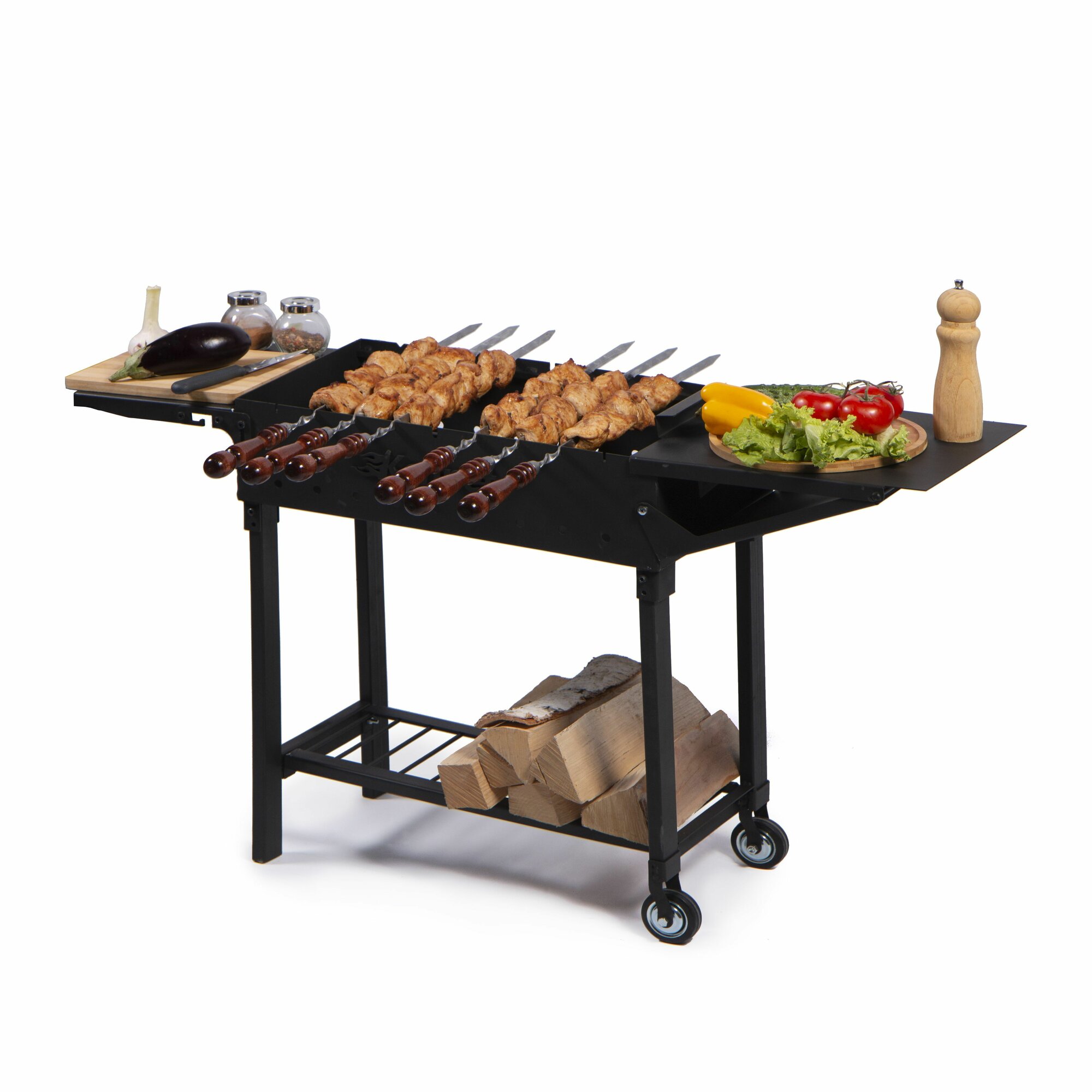 Мангал для дачи складной на колесах Kennet KazanTip Семейный со съемными столиками и дровницей