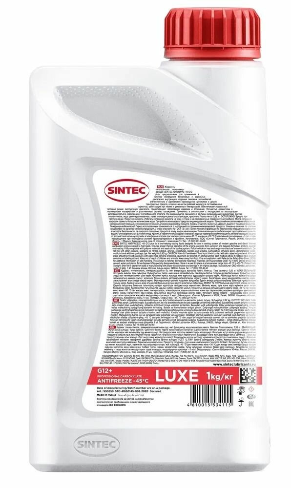 Охлаждающая Жидкость Sintec Antifreeze Luxe G12+ Red -45 1Кг SINTEC арт. 990559
