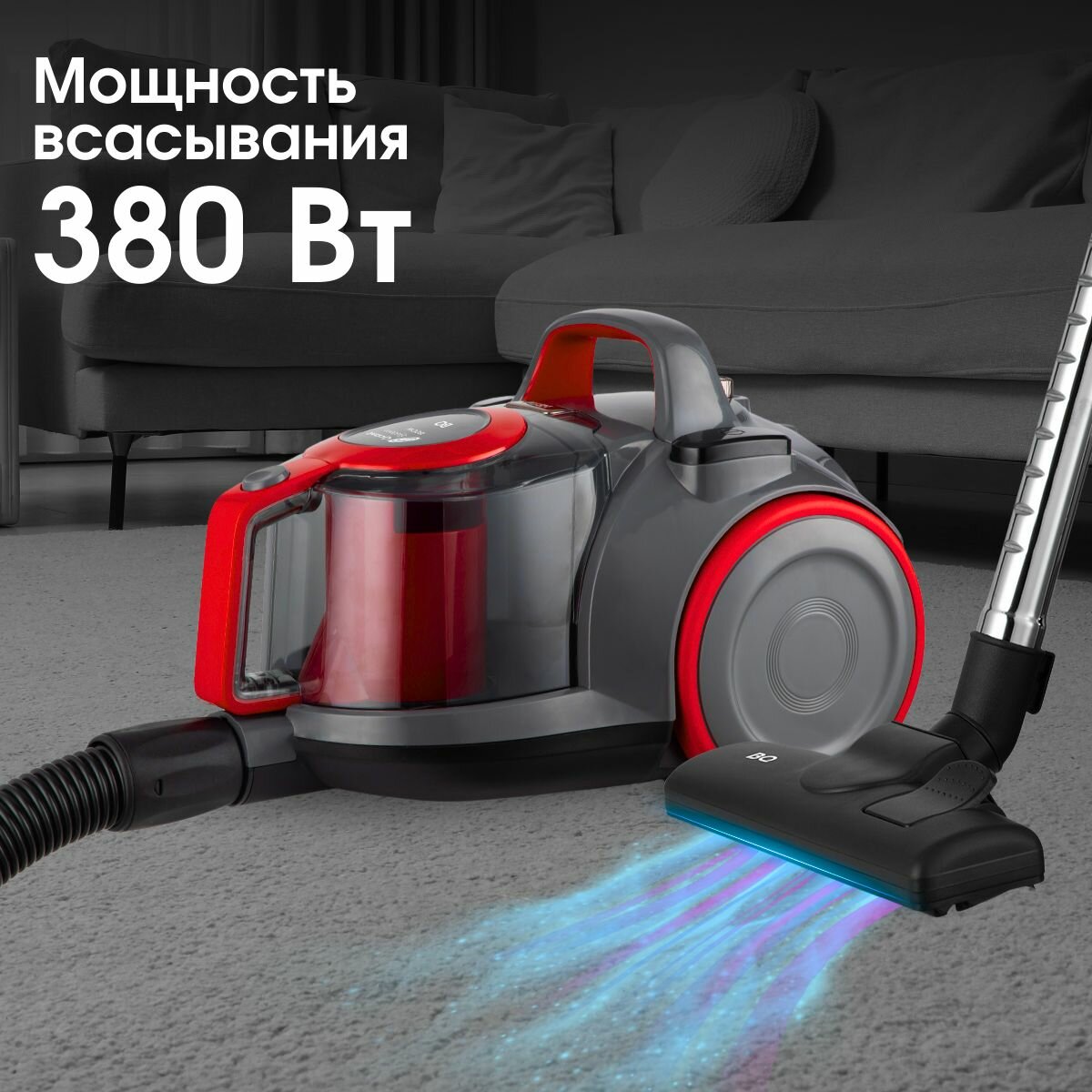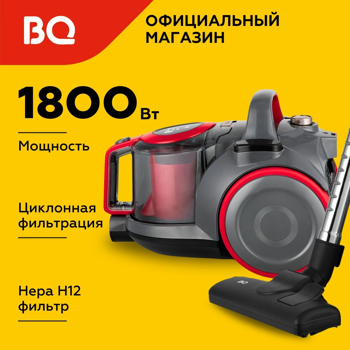 Проводной бытовой пылесос BQ VC1809C Серо-красный / Мощность 1800 Вт / Объем 2.5 л / Фильтр HEPA H12