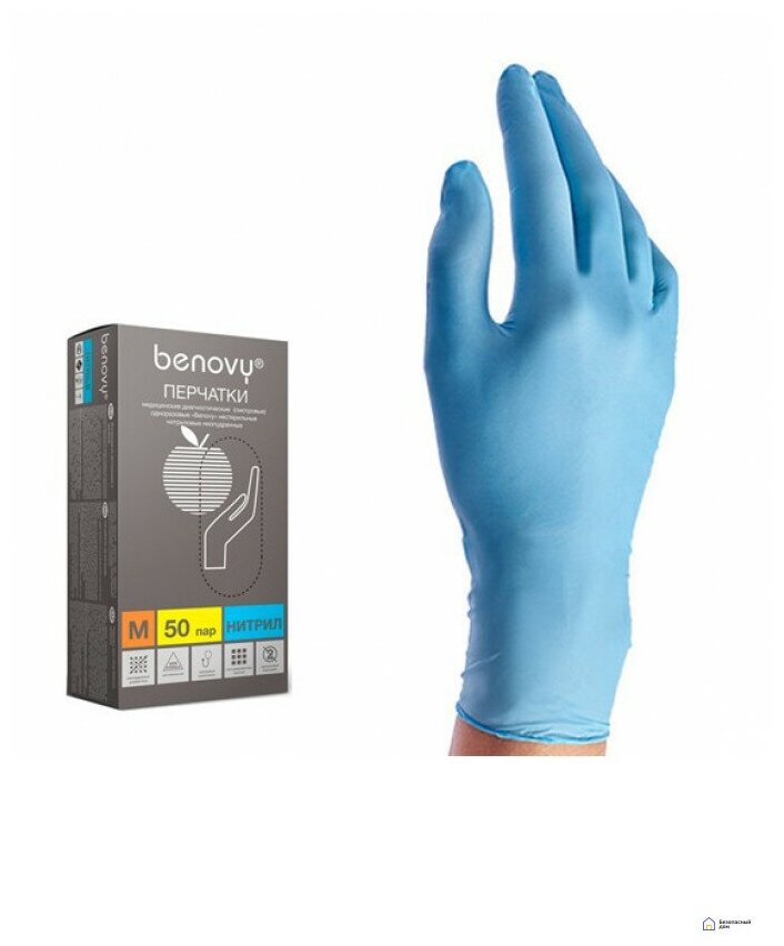 СохранитьПерчатки BENOVY нитриловые голубые полностью текстурированные, плотные М 50 пар интересное: