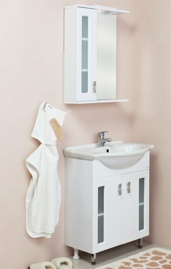 Тумба с раковиной для ванной Кристалл 50 белая.