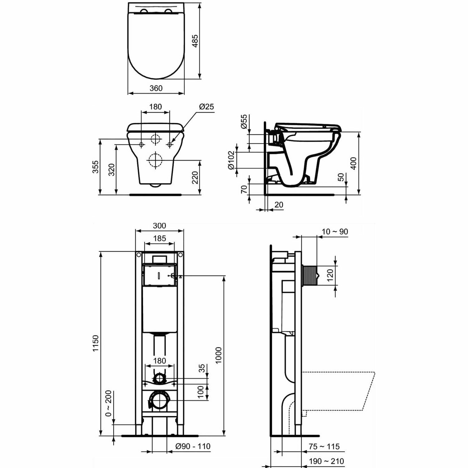 Комплект унитаз с инсталляцией и крышкой Ideal Standard Exacto Rimless Prosys Eco Frame M X022601