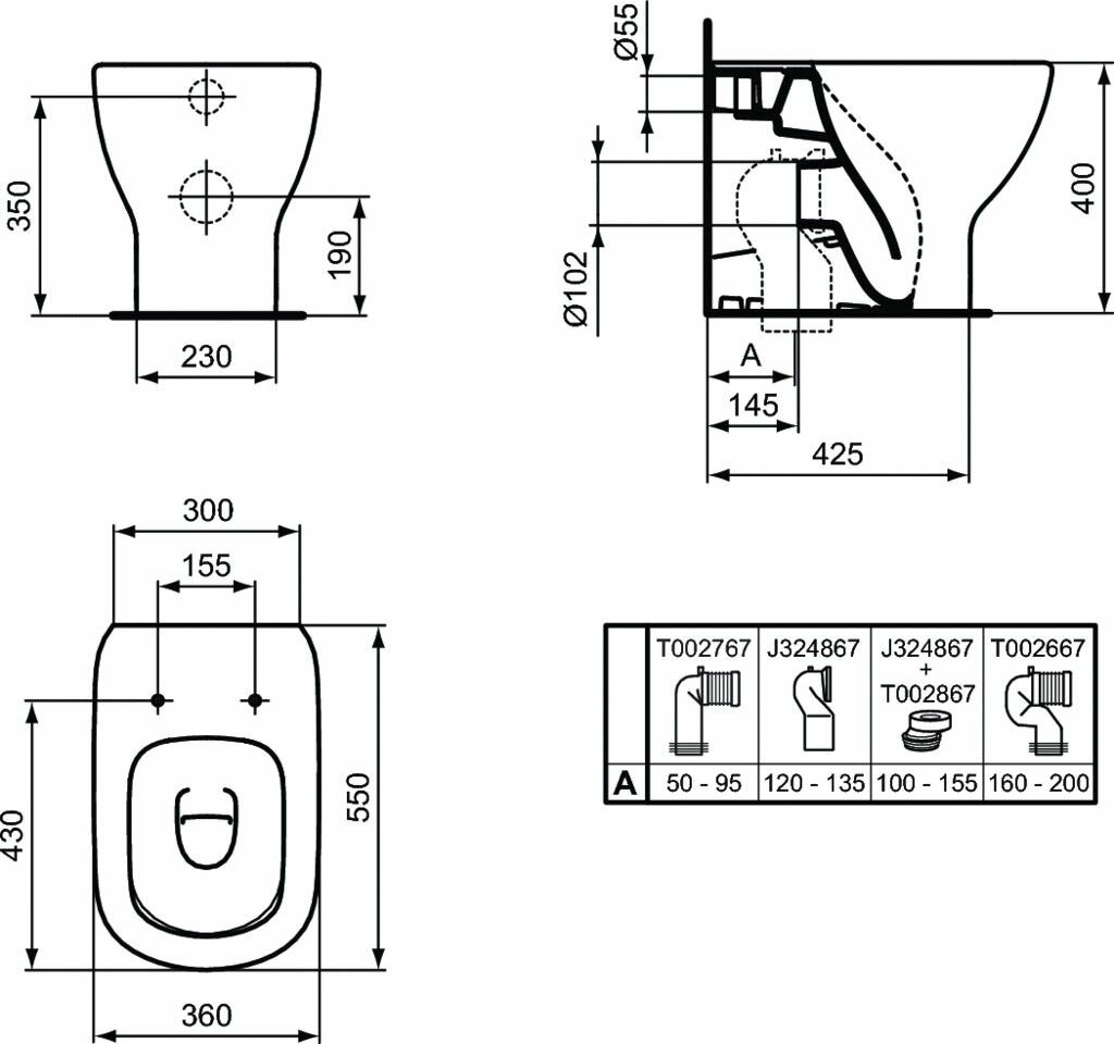 Ideal Standard Унитаз приставной Ideal Standard TESI AquaBlade T0077V3
