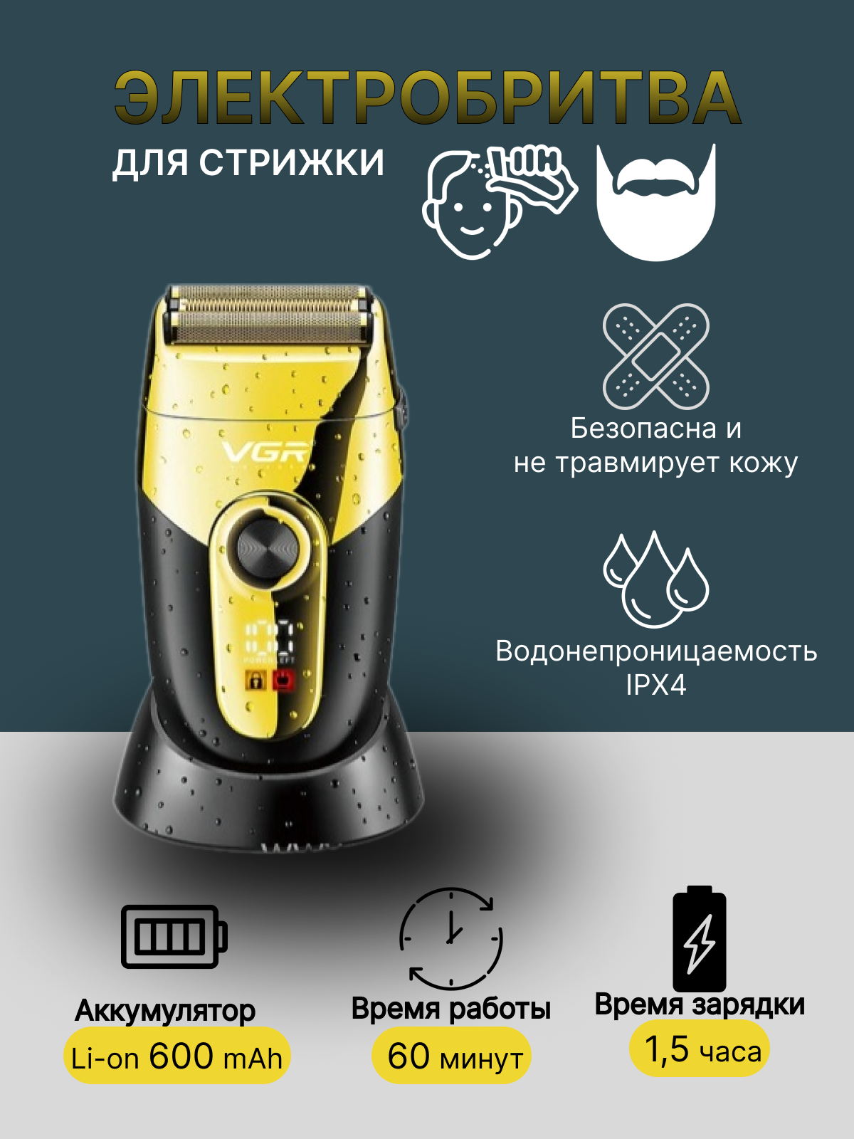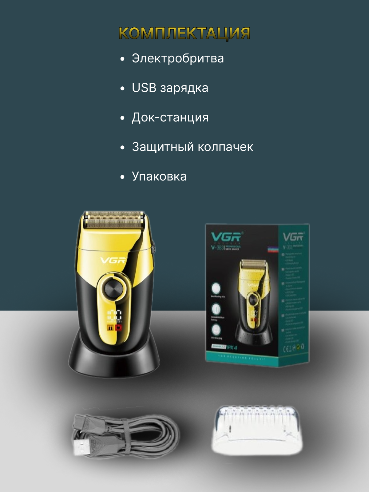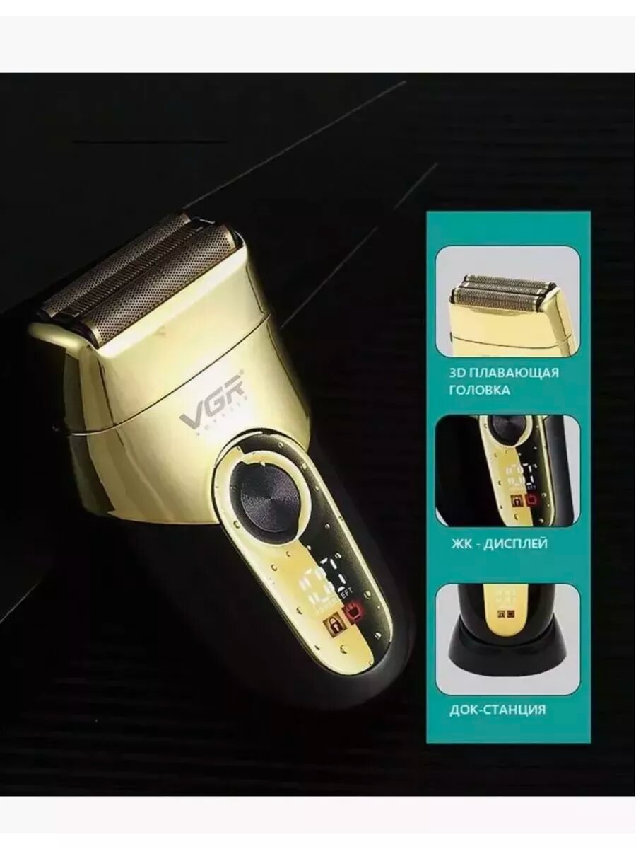 Электробритва мужская/V-383/беспроводная/для чувствительной кожи/600 Мач/USB/низкий уровень шума/led дисплей/золотистый