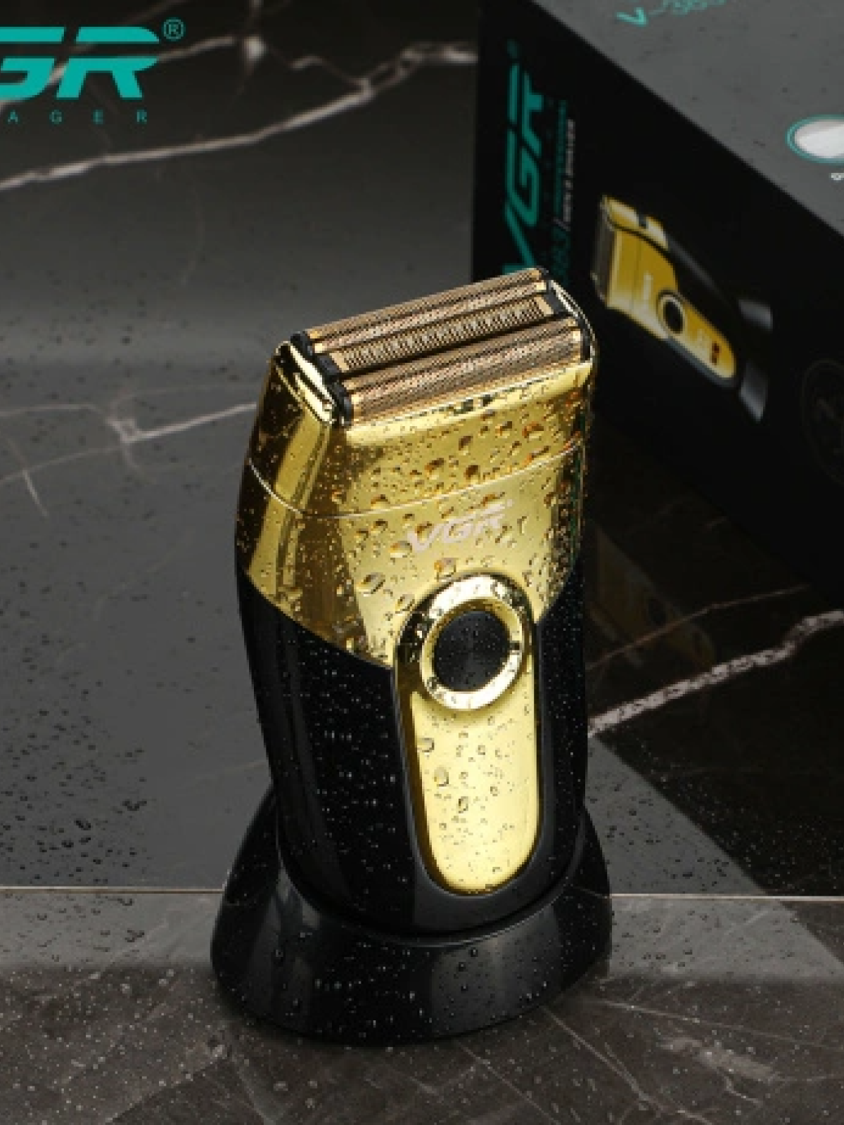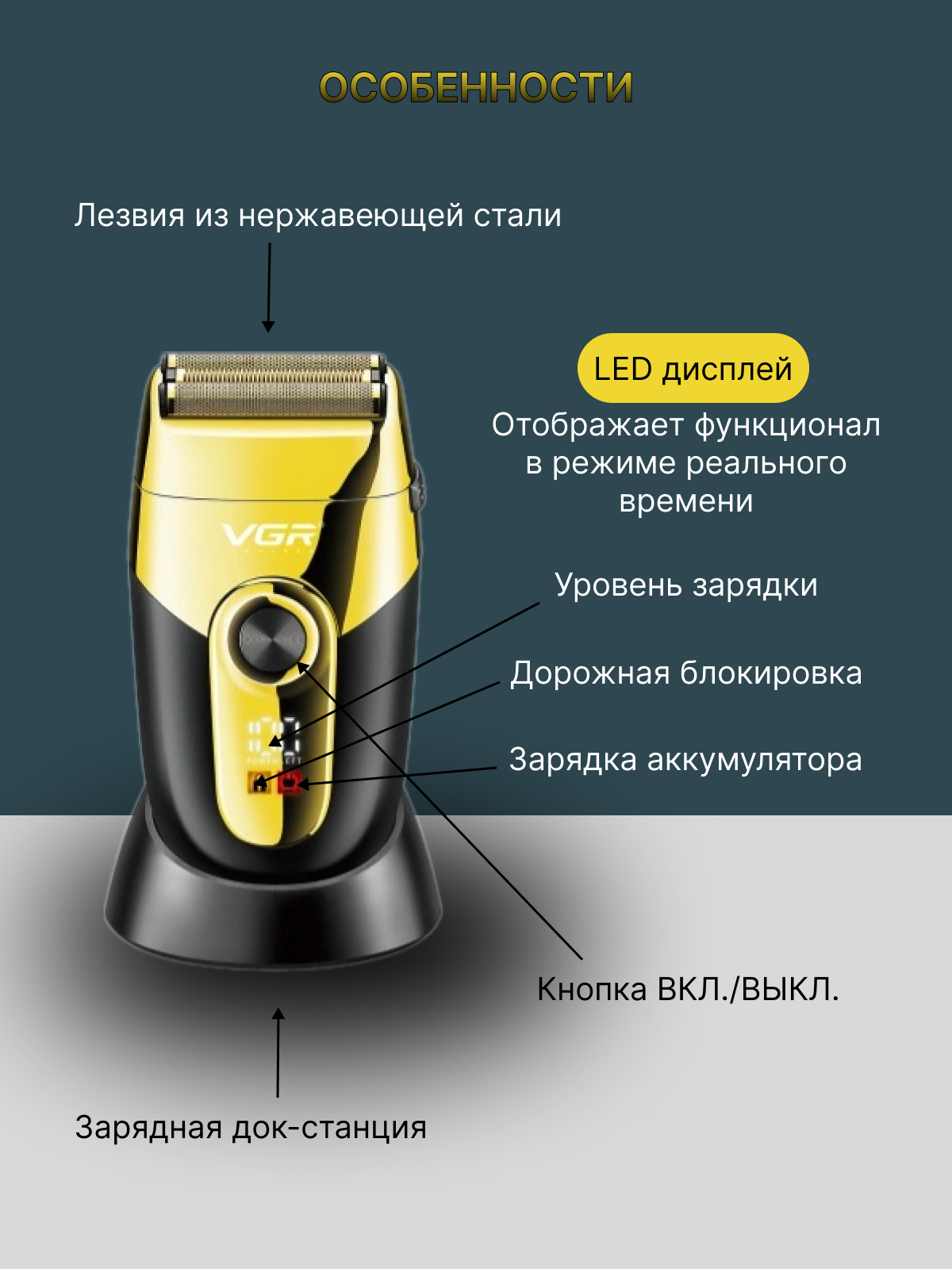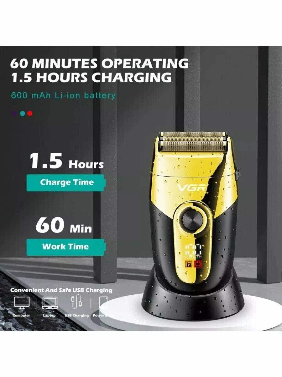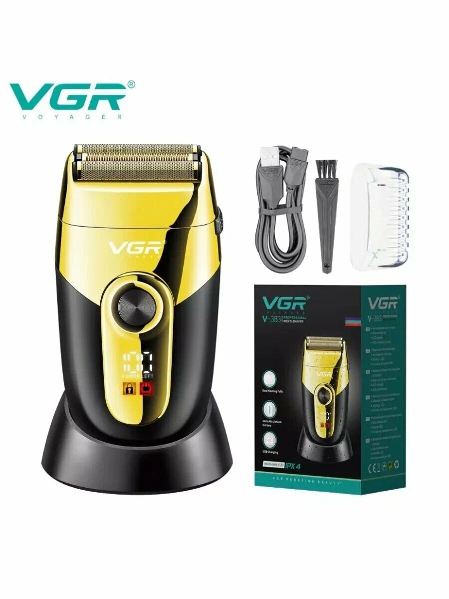 Электробритва мужская/V-383/беспроводная/для чувствительной кожи/600 Мач/USB/низкий уровень шума/led дисплей/золотистый