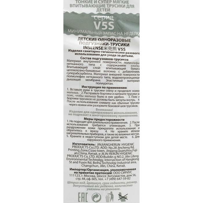 Подгузники трусики INSEENSE V5S, размер XL, 12-17 кг интересное: