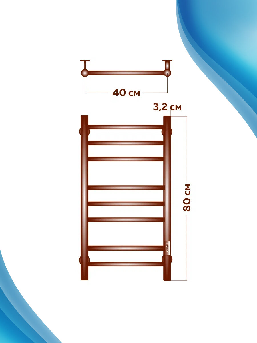 Полотенцесушитель электрический BAU В10 40х80, П8 (3+3+2) с таймером справа, черный матовый RAL 9005 интересное: