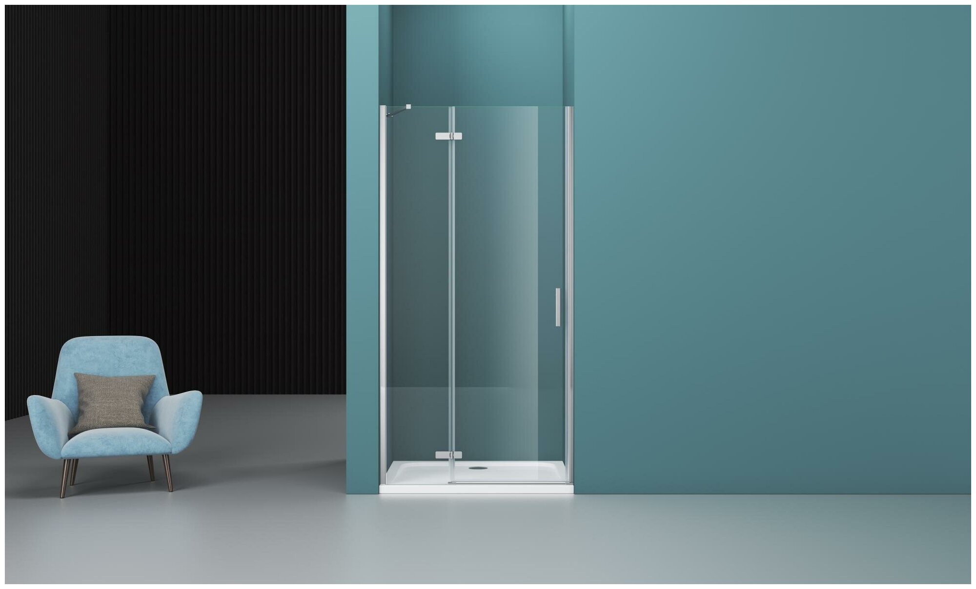 Душевая дверь в нишу BelBagno Kraft, 120 х 195 см, стекло прозрачное, профиль хром, левая, KRAFT-B-12-60/60-C-Cr-L