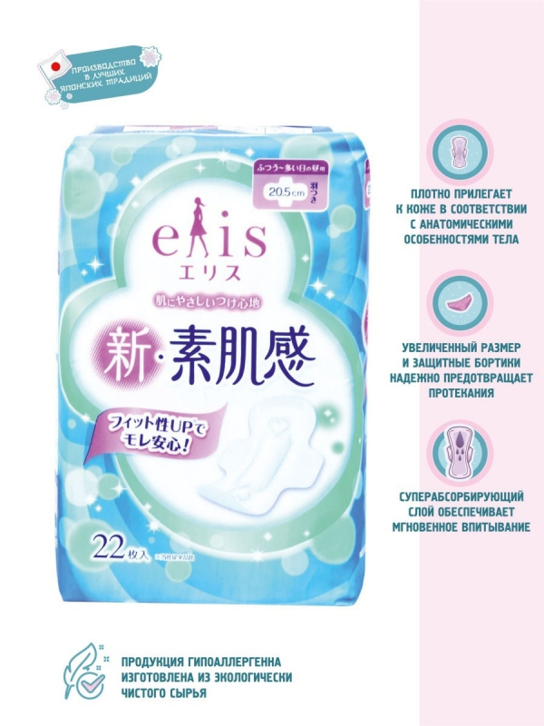 Гигиенические дневные прокладки Elis "Shin-Suhadakan", с крылышками, 3 капли, 22 шт интересное: