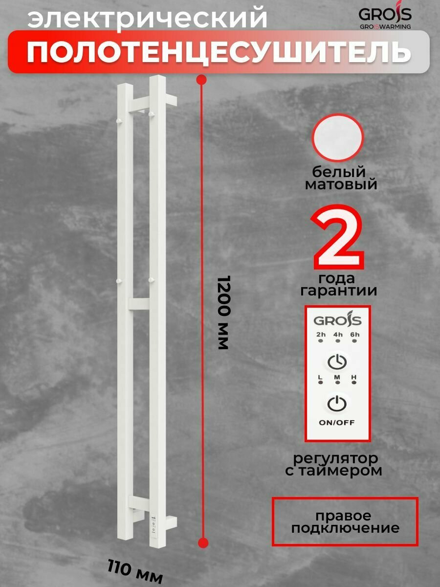 Полотенцесушитель Электрич. с/т GROIS Orso GR-124 110/1200 П3 RAL9016 белый матовый диммер справа