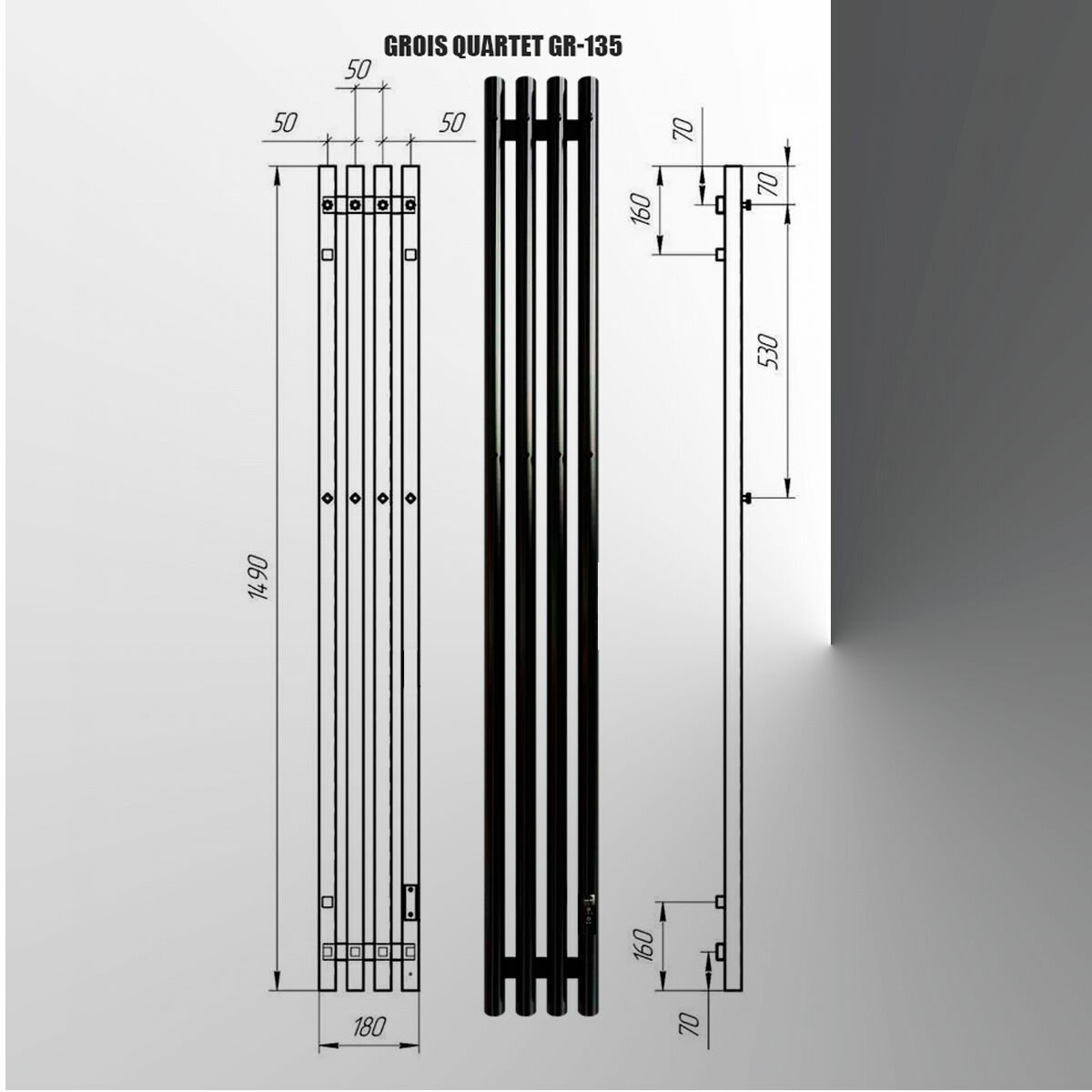Купить Полотенцесушитель Электрич. с/т GROIS Quartet GR-135 180х1500 П3 RAL 9005 R черный матовый