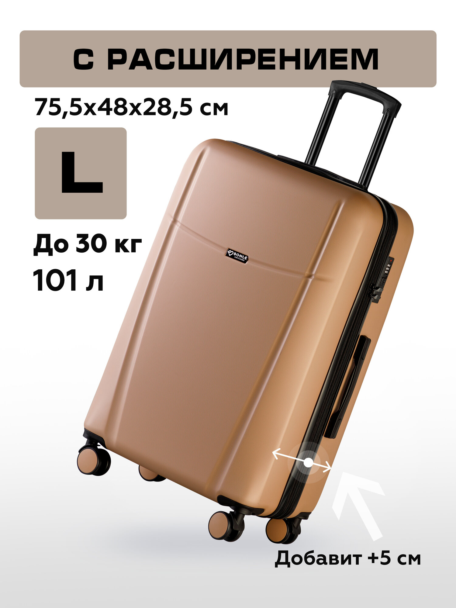 Чемодан на колесах L светло-коричневый Bonle, премиум ABS-пластик 75,5 см, 91 л, большой дорожный