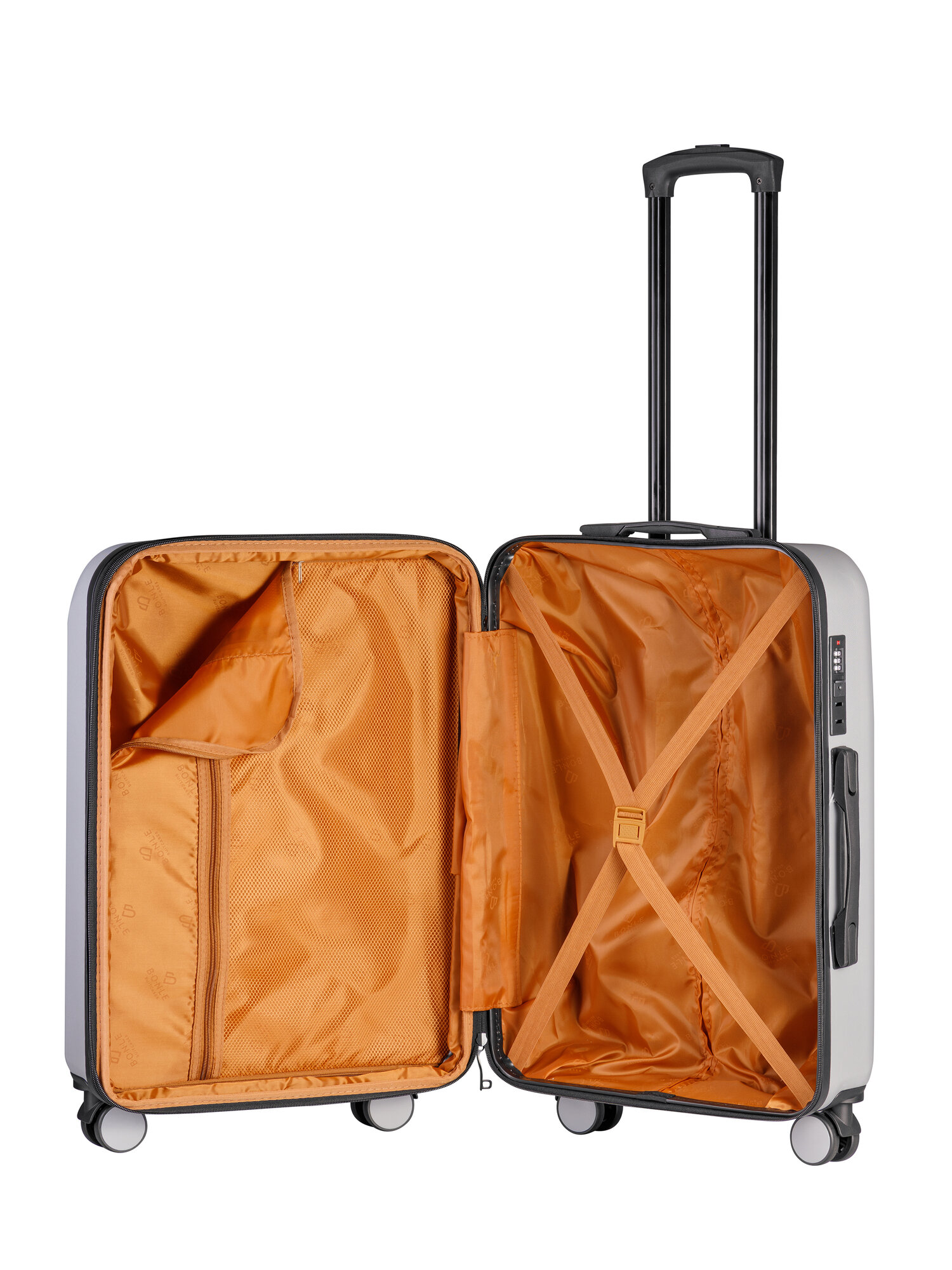 Чемодан на колесах M белый Bonle, премиум ABS-пластик 65 см, 72 л, средний дорожный